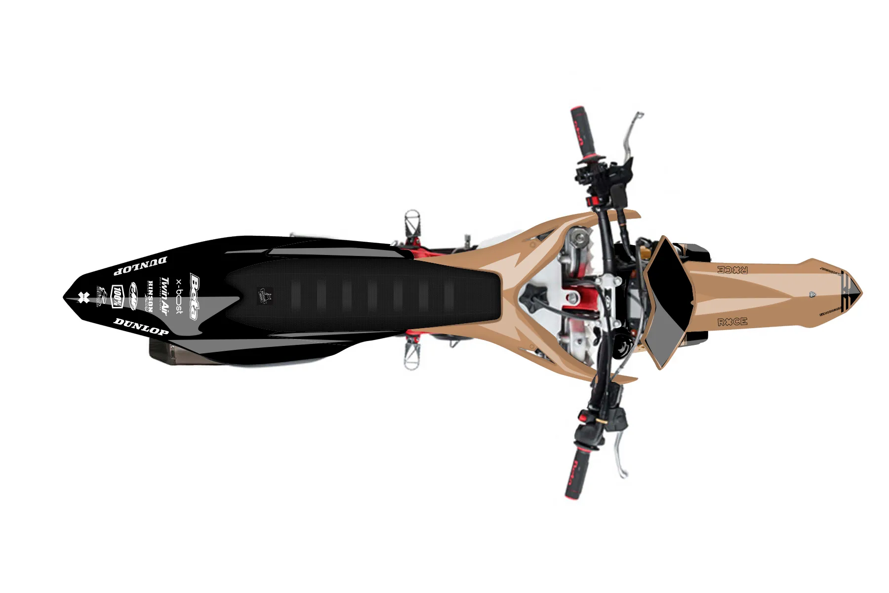 «Future» — готовый комплект графики серии Untucked для Beta Enduro Graphic Kit Beta 480 2023. В комплекте: графика на бак и боковые облицовки, крылья (переднее и заднее), передний щиток, номерные таблички, защита вилки. Материал: ПВХ-винил 80 мкр с холодной ламинацией 300 мкр, общая толщина 380 мкр; покрытие глянцевое или матовое на выбор. Устойчив к UV-излучению, воде, бензину и мойке высокого давления. Клей акриловый на сольвентной основе — постоянный, для гибких пластиков. На простых поверхностях монтируется без нагрева; для сложных изгибов рекомендуем фен. Этот пресет можно заказать как есть или взять за основу в конструкторе: поменять цвета, добавить стартовый номер и свой бренд. Производство — 3–5 рабочих дней, доставка по России СДЭКом или Почтой, по СНГ — курьерскими службами.