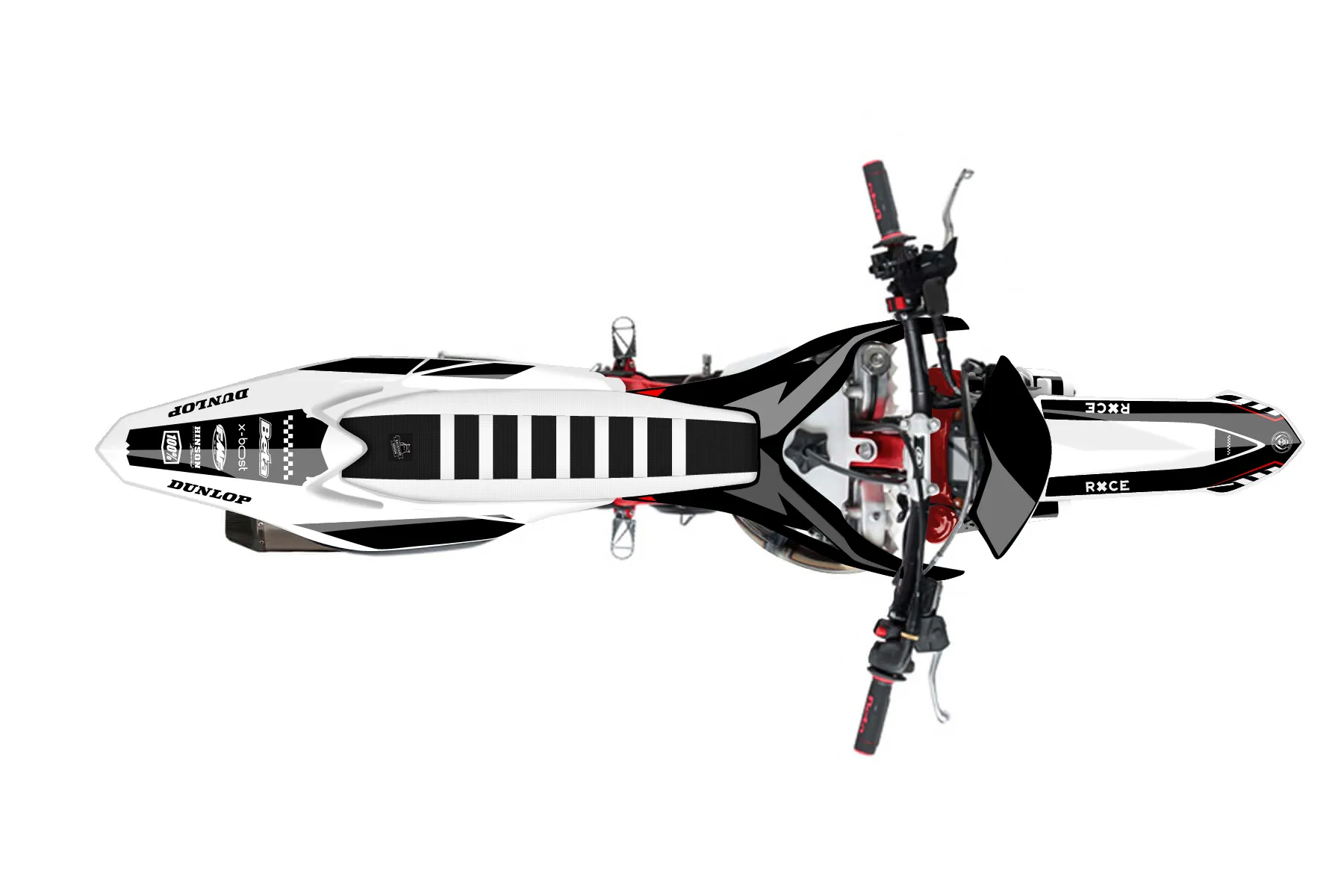 «Dude» — готовый комплект графики серии Maverick для Beta Enduro Graphic Kit Beta Polisport Restyle 2 stroke 2019. В комплекте: графика на бак и боковые облицовки, крылья (переднее и заднее), передний щиток, номерные таблички, защита вилки. Материал: ПВХ-винил 80 мкр с холодной ламинацией 300 мкр, общая толщина 380 мкр; покрытие глянцевое или матовое на выбор. Устойчив к UV-излучению, воде, бензину и мойке высокого давления. Клей акриловый на сольвентной основе — постоянный, для гибких пластиков. На простых поверхностях монтируется без нагрева; для сложных изгибов рекомендуем фен. Этот пресет можно заказать как есть или взять за основу в конструкторе: поменять цвета, добавить стартовый номер и свой бренд. Производство — 3–5 рабочих дней, доставка по России СДЭКом или Почтой, по СНГ — курьерскими службами.