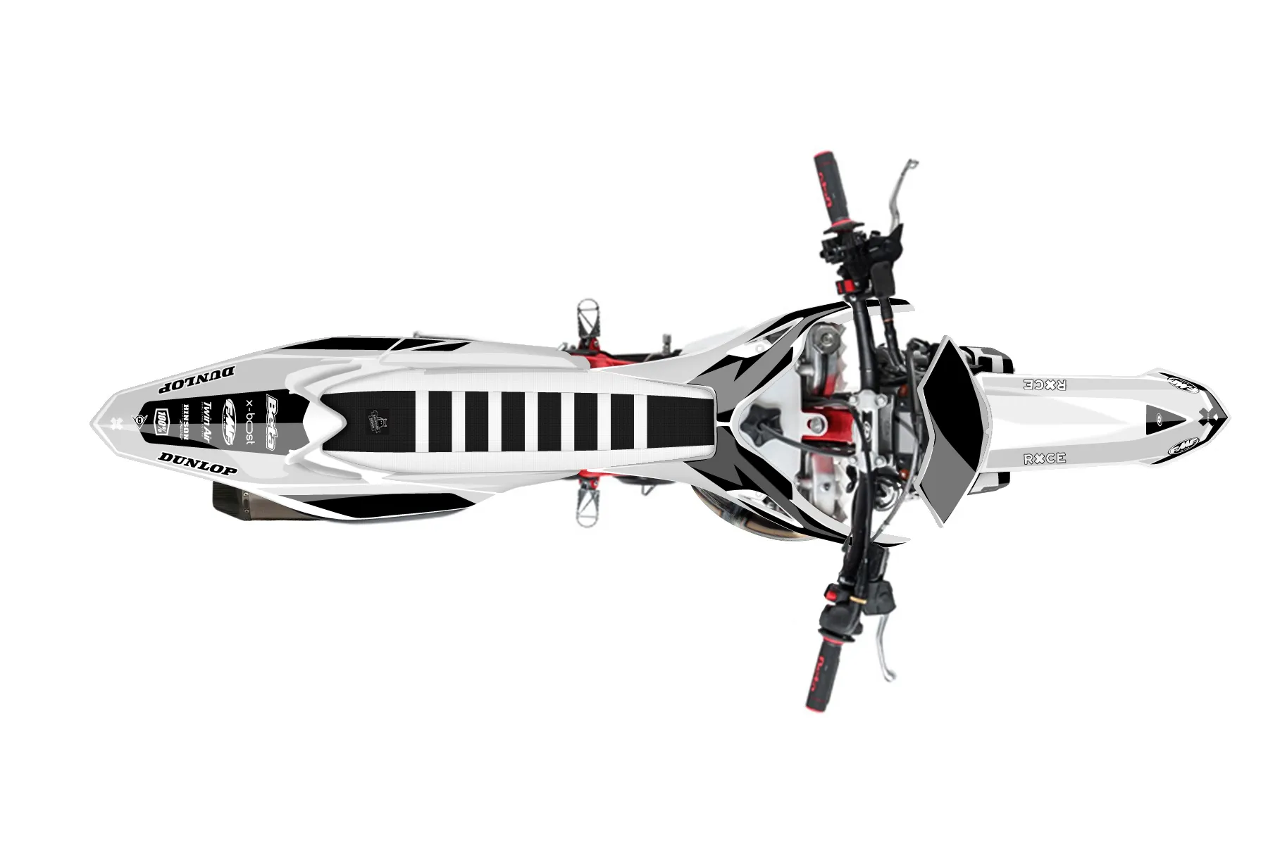 «Worx» — готовый комплект графики серии Flow для Beta Enduro Graphic Kit Beta Polisport Restyle 2 stroke 2021. В комплекте: графика на бак и боковые облицовки, крылья (переднее и заднее), передний щиток, номерные таблички, защита вилки. Материал: ПВХ-винил 80 мкр с холодной ламинацией 300 мкр, общая толщина 380 мкр; покрытие глянцевое или матовое на выбор. Устойчив к UV-излучению, воде, бензину и мойке высокого давления. Клей акриловый на сольвентной основе — постоянный, для гибких пластиков. На простых поверхностях монтируется без нагрева; для сложных изгибов рекомендуем фен. Этот пресет можно заказать как есть или взять за основу в конструкторе: поменять цвета, добавить стартовый номер и свой бренд. Производство — 3–5 рабочих дней, доставка по России СДЭКом или Почтой, по СНГ — курьерскими службами.