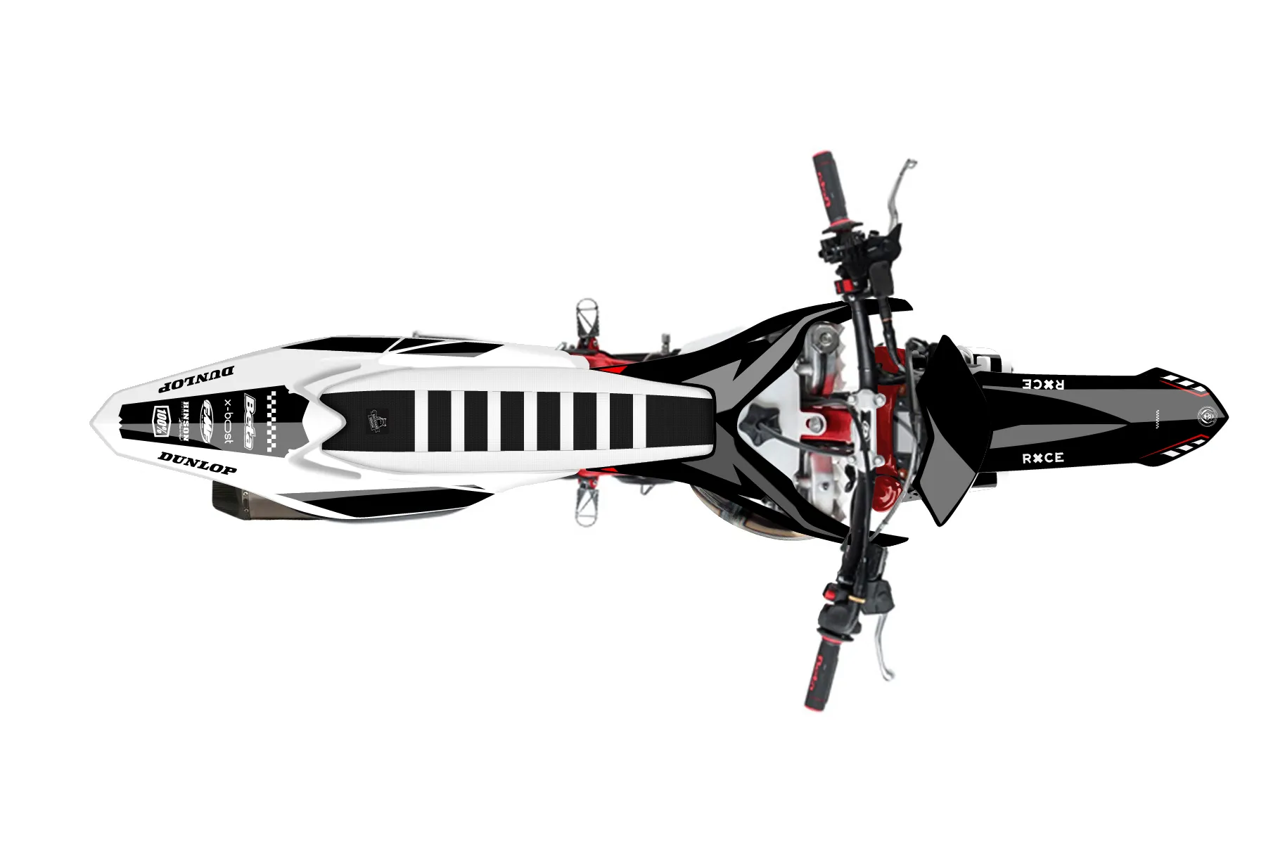 «Dude» — готовый комплект графики серии Maverick для Beta Enduro Graphic Kit Beta Polisport Restyle 2 stroke 2021. В комплекте: графика на бак и боковые облицовки, крылья (переднее и заднее), передний щиток, номерные таблички, защита вилки. Материал: ПВХ-винил 80 мкр с холодной ламинацией 300 мкр, общая толщина 380 мкр; покрытие глянцевое или матовое на выбор. Устойчив к UV-излучению, воде, бензину и мойке высокого давления. Клей акриловый на сольвентной основе — постоянный, для гибких пластиков. На простых поверхностях монтируется без нагрева; для сложных изгибов рекомендуем фен. Этот пресет можно заказать как есть или взять за основу в конструкторе: поменять цвета, добавить стартовый номер и свой бренд. Производство — 3–5 рабочих дней, доставка по России СДЭКом или Почтой, по СНГ — курьерскими службами.