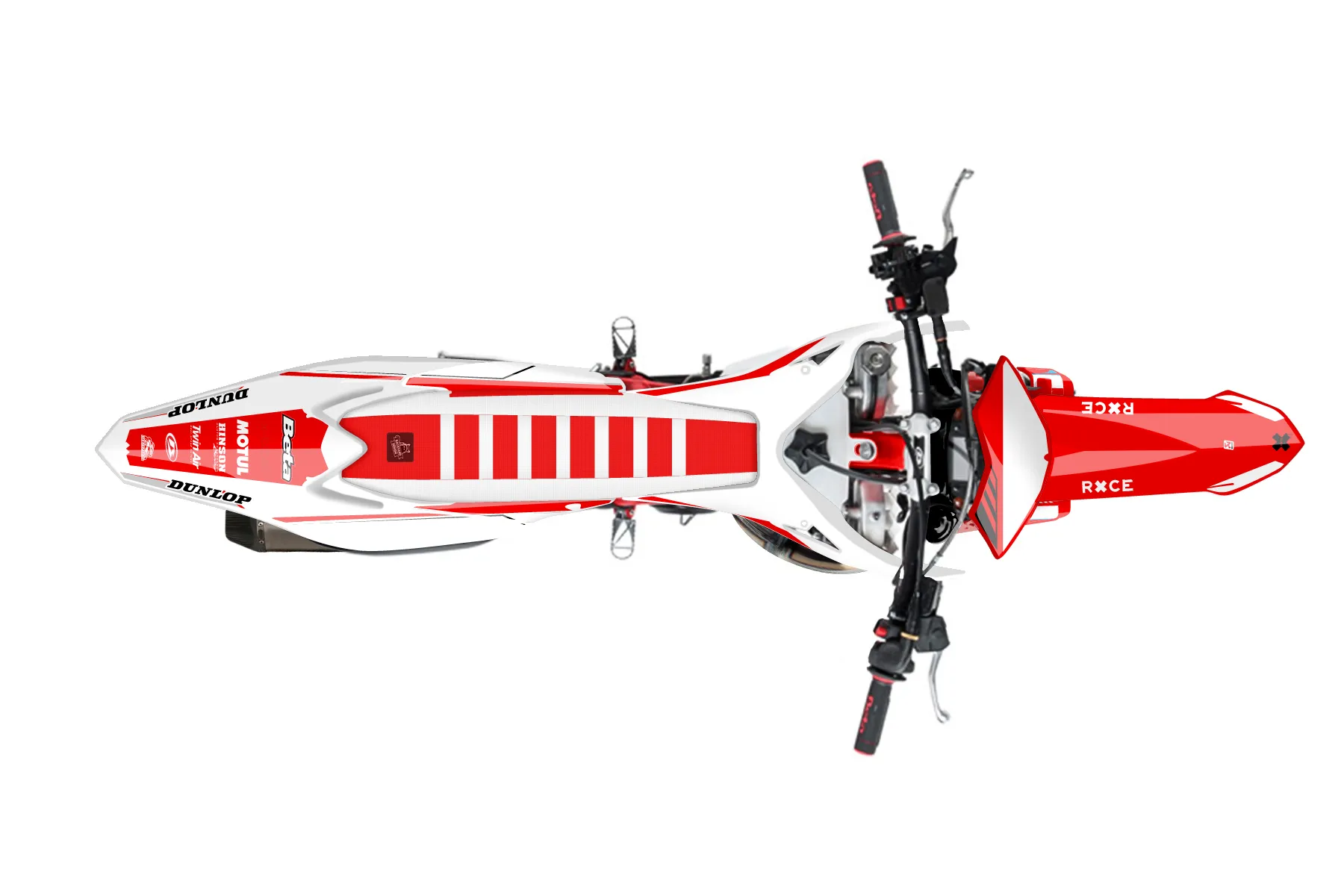 «Red White » — готовый комплект графики серии Maverick для Beta Enduro Graphic Kit Beta Polisport Restyle 2 stroke 2021. В комплекте: графика на бак и боковые облицовки, крылья (переднее и заднее), передний щиток, номерные таблички, защита вилки. Материал: ПВХ-винил 80 мкр с холодной ламинацией 300 мкр, общая толщина 380 мкр; покрытие глянцевое или матовое на выбор. Устойчив к UV-излучению, воде, бензину и мойке высокого давления. Клей акриловый на сольвентной основе — постоянный, для гибких пластиков. На простых поверхностях монтируется без нагрева; для сложных изгибов рекомендуем фен. Этот пресет можно заказать как есть или взять за основу в конструкторе: поменять цвета, добавить стартовый номер и свой бренд. Производство — 3–5 рабочих дней, доставка по России СДЭКом или Почтой, по СНГ — курьерскими службами.