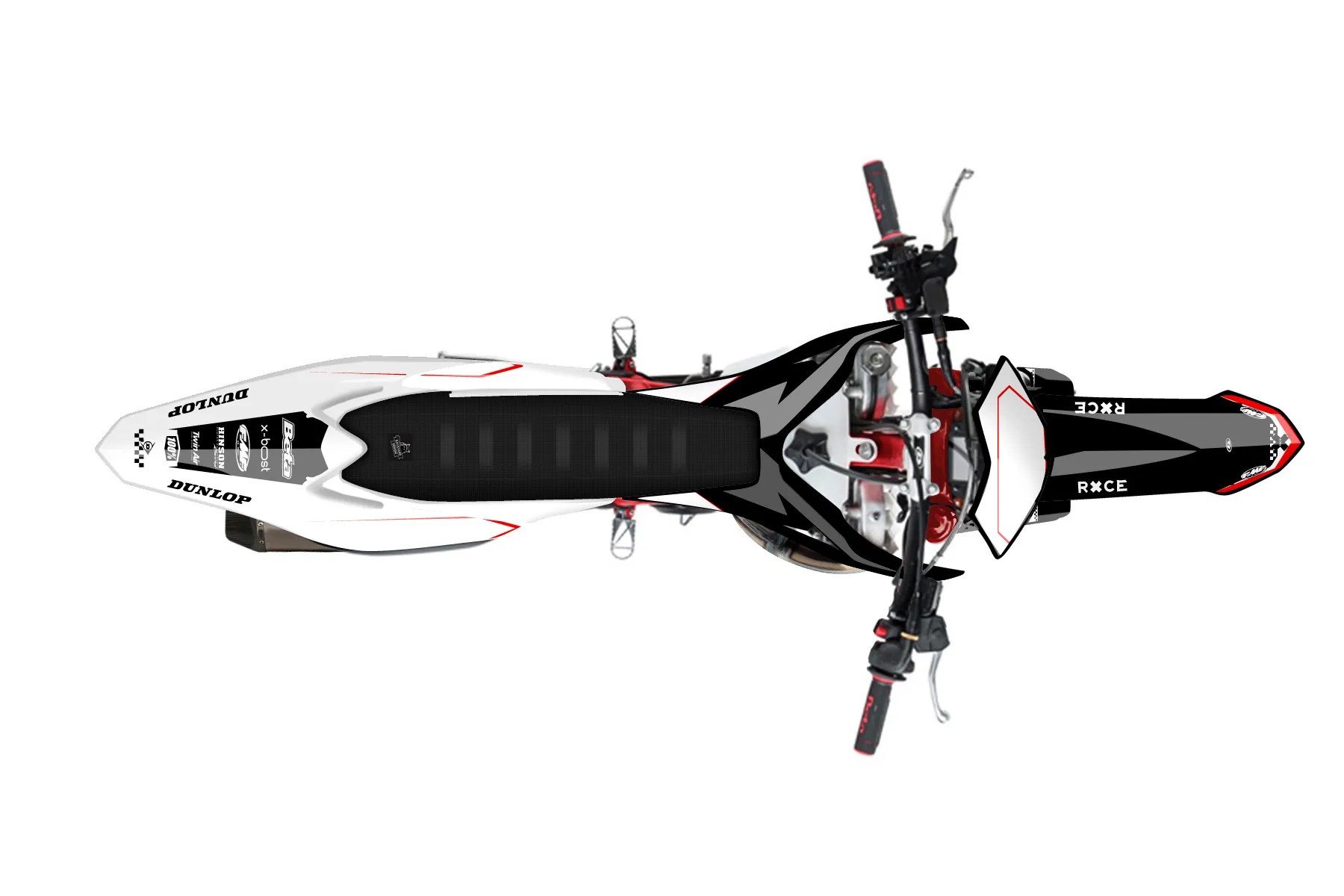 «Draft» — готовый комплект графики серии Staple для Beta Enduro Graphic Kit Beta Polisport Restyle 2 stroke 2021. В комплекте: графика на бак и боковые облицовки, крылья (переднее и заднее), передний щиток, номерные таблички, защита вилки. Материал: ПВХ-винил 80 мкр с холодной ламинацией 300 мкр, общая толщина 380 мкр; покрытие глянцевое или матовое на выбор. Устойчив к UV-излучению, воде, бензину и мойке высокого давления. Клей акриловый на сольвентной основе — постоянный, для гибких пластиков. На простых поверхностях монтируется без нагрева; для сложных изгибов рекомендуем фен. Этот пресет можно заказать как есть или взять за основу в конструкторе: поменять цвета, добавить стартовый номер и свой бренд. Производство — 3–5 рабочих дней, доставка по России СДЭКом или Почтой, по СНГ — курьерскими службами.