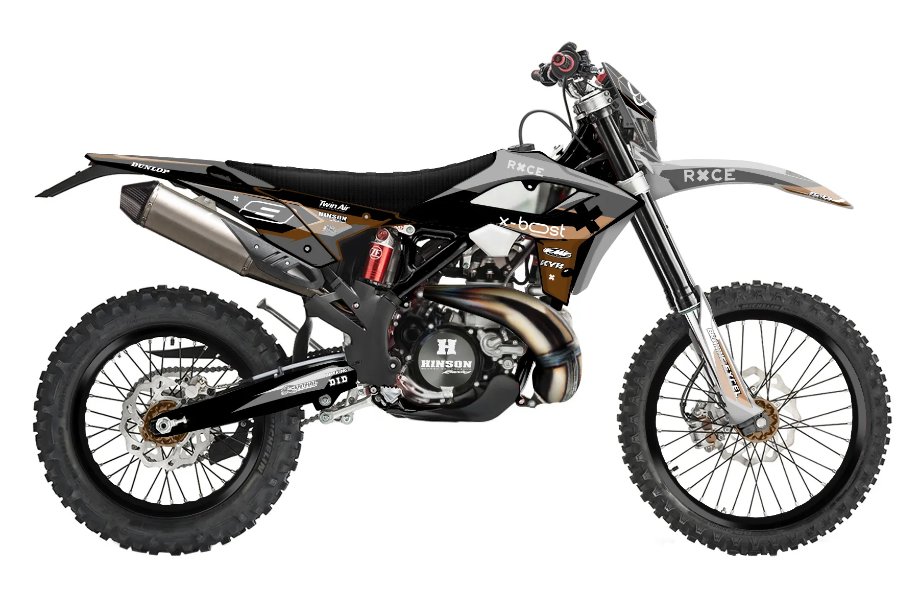 «Dub» — готовый комплект графики серии Staple для Beta Enduro Graphic Kit Beta Polisport Restyle 2 stroke 2021. В комплекте: графика на бак и боковые облицовки, крылья (переднее и заднее), передний щиток, номерные таблички, защита вилки. Материал: ПВХ-винил 80 мкр с холодной ламинацией 300 мкр, общая толщина 380 мкр; покрытие глянцевое или матовое на выбор. Устойчив к UV-излучению, воде, бензину и мойке высокого давления. Клей акриловый на сольвентной основе — постоянный, для гибких пластиков. На простых поверхностях монтируется без нагрева; для сложных изгибов рекомендуем фен. Этот пресет можно заказать как есть или взять за основу в конструкторе: поменять цвета, добавить стартовый номер и свой бренд. Производство — 3–5 рабочих дней, доставка по России СДЭКом или Почтой, по СНГ — курьерскими службами.