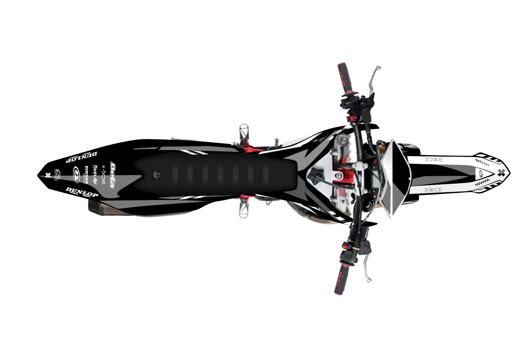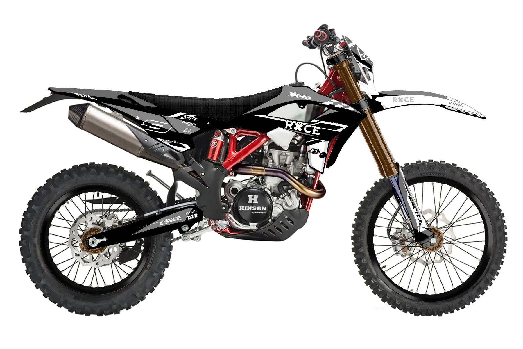 «Canon» — готовый комплект графики серии Maverick для Beta Enduro Graphic Kit Beta RR Polisport Restyle 4 stroke 2019. В комплекте: графика на бак и боковые облицовки, крылья (переднее и заднее), передний щиток, номерные таблички, защита вилки. Материал: ПВХ-винил 80 мкр с холодной ламинацией 300 мкр, общая толщина 380 мкр; покрытие глянцевое или матовое на выбор. Устойчив к UV-излучению, воде, бензину и мойке высокого давления. Клей акриловый на сольвентной основе — постоянный, для гибких пластиков. На простых поверхностях монтируется без нагрева; для сложных изгибов рекомендуем фен. Этот пресет можно заказать как есть или взять за основу в конструкторе: поменять цвета, добавить стартовый номер и свой бренд. Производство — 3–5 рабочих дней, доставка по России СДЭКом или Почтой, по СНГ — курьерскими службами.