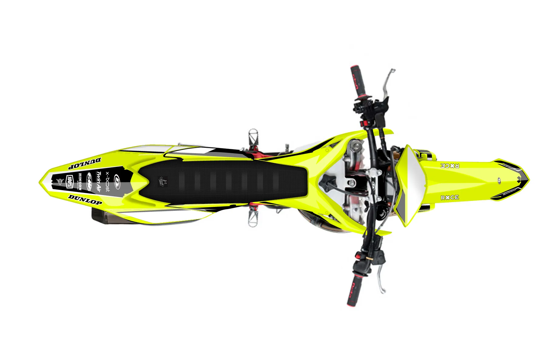 «Daze» — готовый комплект графики серии Maverick для Beta Enduro Graphic Kit Beta RR Polisport Restyle 4 stroke 2019. В комплекте: графика на бак и боковые облицовки, крылья (переднее и заднее), передний щиток, номерные таблички, защита вилки. Материал: ПВХ-винил 80 мкр с холодной ламинацией 300 мкр, общая толщина 380 мкр; покрытие глянцевое или матовое на выбор. Устойчив к UV-излучению, воде, бензину и мойке высокого давления. Клей акриловый на сольвентной основе — постоянный, для гибких пластиков. На простых поверхностях монтируется без нагрева; для сложных изгибов рекомендуем фен. Этот пресет можно заказать как есть или взять за основу в конструкторе: поменять цвета, добавить стартовый номер и свой бренд. Производство — 3–5 рабочих дней, доставка по России СДЭКом или Почтой, по СНГ — курьерскими службами.