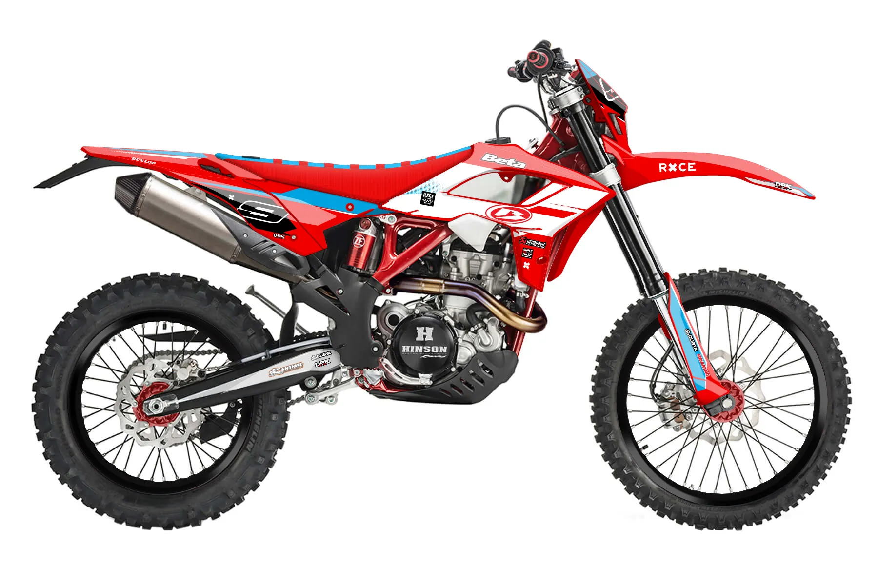 «Showtime» — готовый комплект графики серии Maverick для Beta Enduro Graphic Kit Beta RR Polisport Restyle 4 stroke 2019. В комплекте: графика на бак и боковые облицовки, крылья (переднее и заднее), передний щиток, номерные таблички, защита вилки. Материал: ПВХ-винил 80 мкр с холодной ламинацией 300 мкр, общая толщина 380 мкр; покрытие глянцевое или матовое на выбор. Устойчив к UV-излучению, воде, бензину и мойке высокого давления. Клей акриловый на сольвентной основе — постоянный, для гибких пластиков. На простых поверхностях монтируется без нагрева; для сложных изгибов рекомендуем фен. Этот пресет можно заказать как есть или взять за основу в конструкторе: поменять цвета, добавить стартовый номер и свой бренд. Производство — 3–5 рабочих дней, доставка по России СДЭКом или Почтой, по СНГ — курьерскими службами.