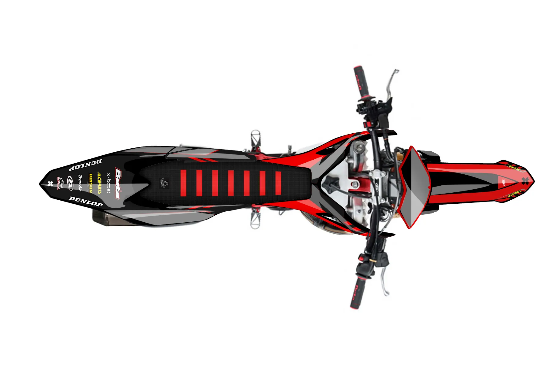 «Stance» — готовый комплект графики серии Maverick для Beta Enduro Graphic Kit Beta RR Polisport Restyle 4 stroke 2019. В комплекте: графика на бак и боковые облицовки, крылья (переднее и заднее), передний щиток, номерные таблички, защита вилки. Материал: ПВХ-винил 80 мкр с холодной ламинацией 300 мкр, общая толщина 380 мкр; покрытие глянцевое или матовое на выбор. Устойчив к UV-излучению, воде, бензину и мойке высокого давления. Клей акриловый на сольвентной основе — постоянный, для гибких пластиков. На простых поверхностях монтируется без нагрева; для сложных изгибов рекомендуем фен. Этот пресет можно заказать как есть или взять за основу в конструкторе: поменять цвета, добавить стартовый номер и свой бренд. Производство — 3–5 рабочих дней, доставка по России СДЭКом или Почтой, по СНГ — курьерскими службами.