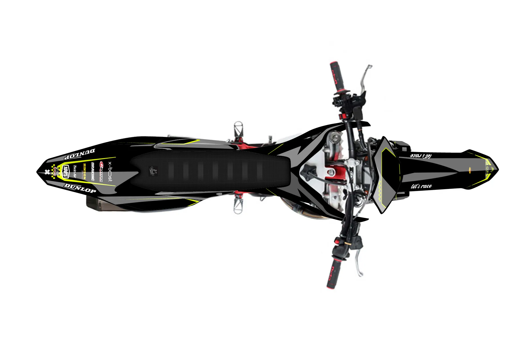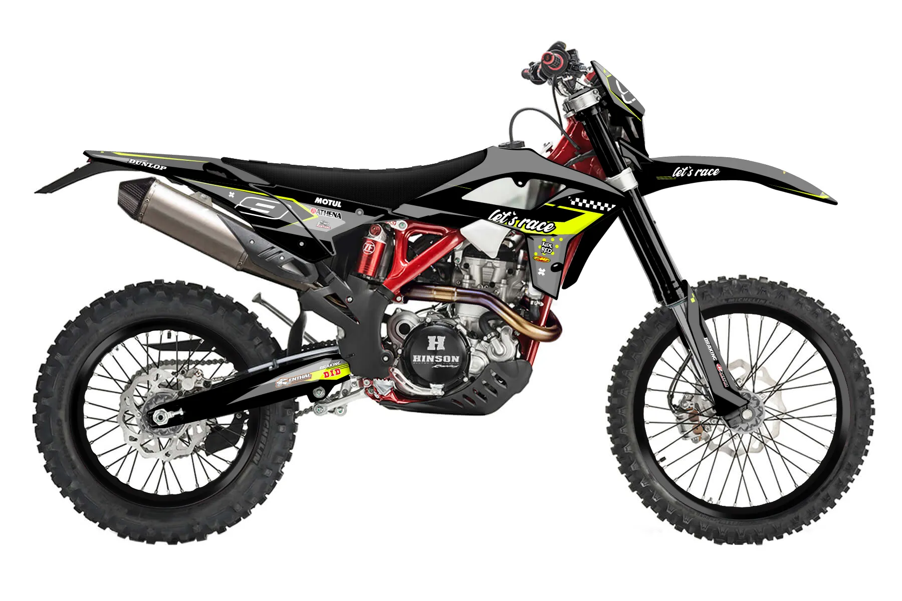 «Bright Neon» — готовый комплект графики серии Staple для Beta Enduro Graphic Kit Beta RR Polisport Restyle 4 stroke 2019. В комплекте: графика на бак и боковые облицовки, крылья (переднее и заднее), передний щиток, номерные таблички, защита вилки. Материал: ПВХ-винил 80 мкр с холодной ламинацией 300 мкр, общая толщина 380 мкр; покрытие глянцевое или матовое на выбор. Устойчив к UV-излучению, воде, бензину и мойке высокого давления. Клей акриловый на сольвентной основе — постоянный, для гибких пластиков. На простых поверхностях монтируется без нагрева; для сложных изгибов рекомендуем фен. Этот пресет можно заказать как есть или взять за основу в конструкторе: поменять цвета, добавить стартовый номер и свой бренд. Производство — 3–5 рабочих дней, доставка по России СДЭКом или Почтой, по СНГ — курьерскими службами.