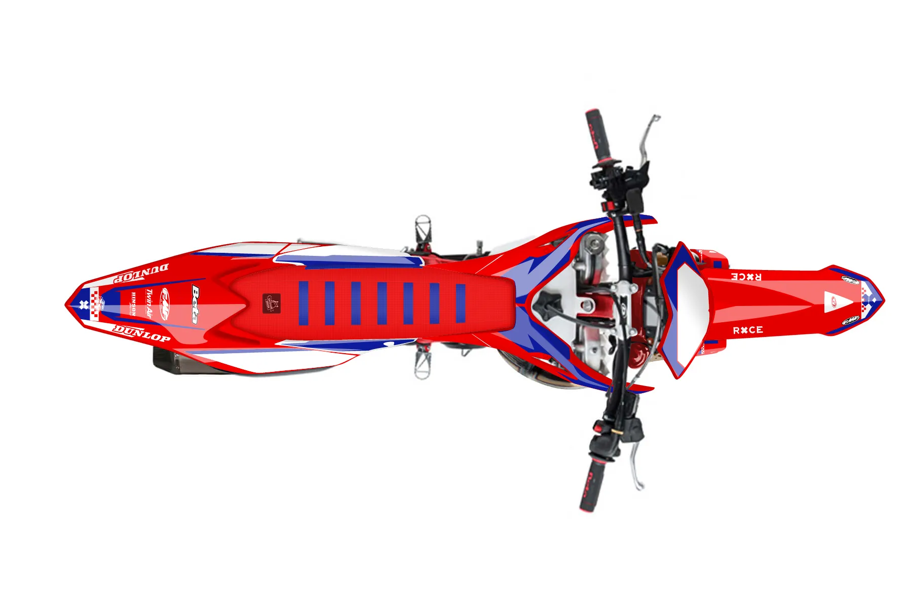 «Swoosh» — готовый комплект графики серии Staple для Beta Enduro Graphic Kit Beta RR Polisport Restyle 4 stroke 2019. В комплекте: графика на бак и боковые облицовки, крылья (переднее и заднее), передний щиток, номерные таблички, защита вилки. Материал: ПВХ-винил 80 мкр с холодной ламинацией 300 мкр, общая толщина 380 мкр; покрытие глянцевое или матовое на выбор. Устойчив к UV-излучению, воде, бензину и мойке высокого давления. Клей акриловый на сольвентной основе — постоянный, для гибких пластиков. На простых поверхностях монтируется без нагрева; для сложных изгибов рекомендуем фен. Этот пресет можно заказать как есть или взять за основу в конструкторе: поменять цвета, добавить стартовый номер и свой бренд. Производство — 3–5 рабочих дней, доставка по России СДЭКом или Почтой, по СНГ — курьерскими службами.