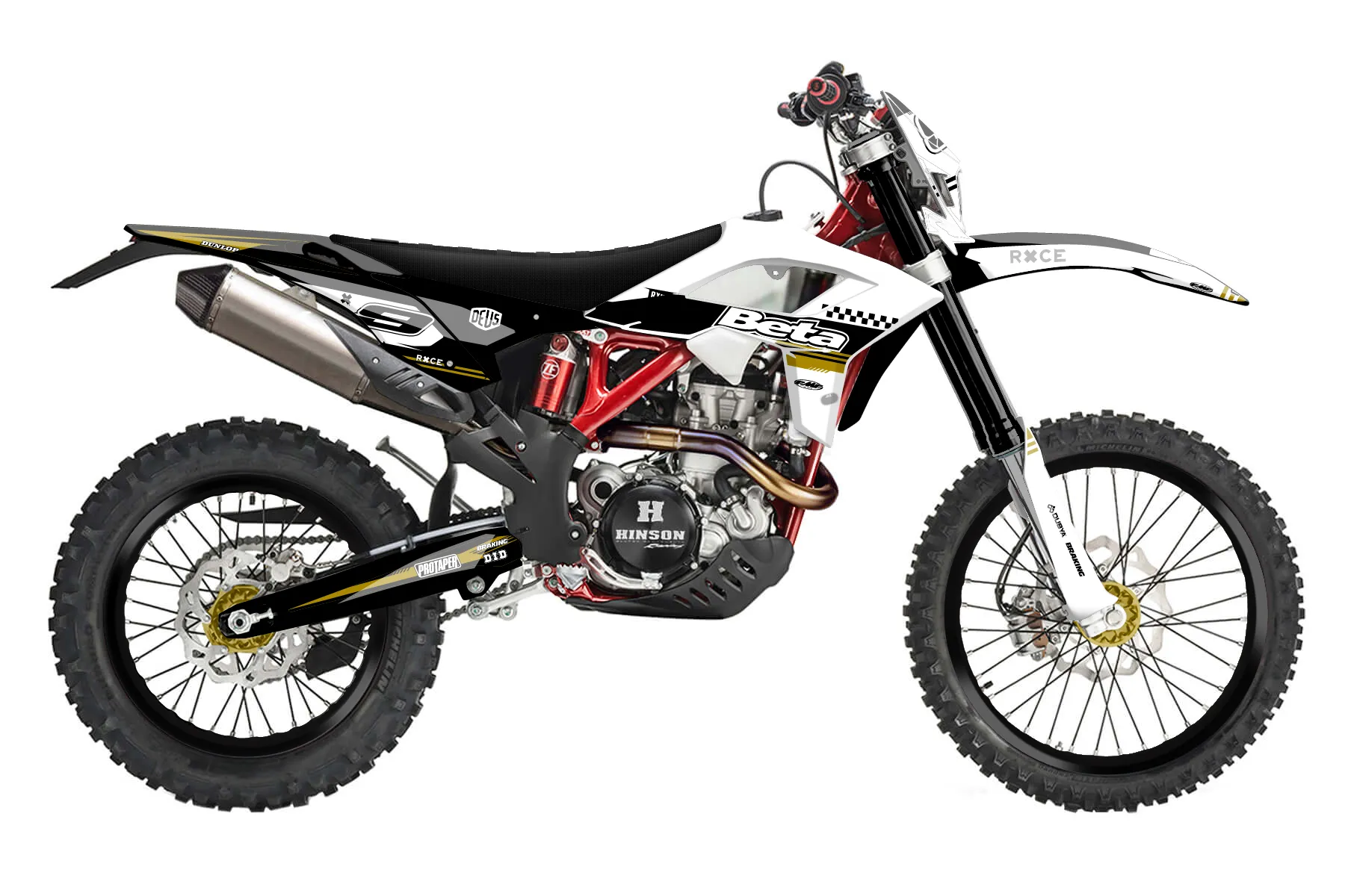 «Agile» — готовый комплект графики серии Untucked для Beta Enduro Graphic Kit Beta RR Polisport Restyle 4 stroke 2019. В комплекте: графика на бак и боковые облицовки, крылья (переднее и заднее), передний щиток, номерные таблички, защита вилки. Материал: ПВХ-винил 80 мкр с холодной ламинацией 300 мкр, общая толщина 380 мкр; покрытие глянцевое или матовое на выбор. Устойчив к UV-излучению, воде, бензину и мойке высокого давления. Клей акриловый на сольвентной основе — постоянный, для гибких пластиков. На простых поверхностях монтируется без нагрева; для сложных изгибов рекомендуем фен. Этот пресет можно заказать как есть или взять за основу в конструкторе: поменять цвета, добавить стартовый номер и свой бренд. Производство — 3–5 рабочих дней, доставка по России СДЭКом или Почтой, по СНГ — курьерскими службами.