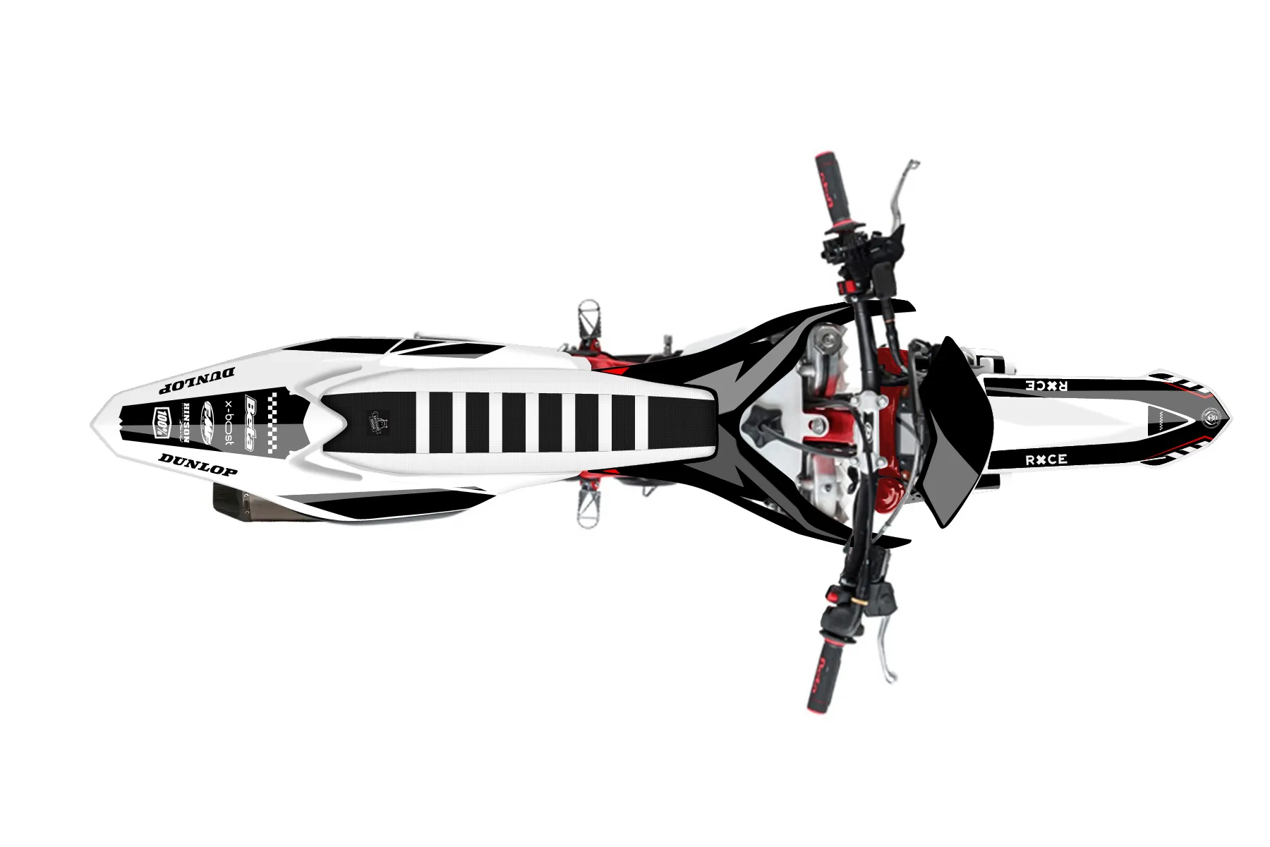 «Dude» — готовый комплект графики серии Maverick для Beta Enduro Graphic Kit Beta RR Polisport Restyle 4 stroke 2021. В комплекте: графика на бак и боковые облицовки, крылья (переднее и заднее), передний щиток, номерные таблички, защита вилки. Материал: ПВХ-винил 80 мкр с холодной ламинацией 300 мкр, общая толщина 380 мкр; покрытие глянцевое или матовое на выбор. Устойчив к UV-излучению, воде, бензину и мойке высокого давления. Клей акриловый на сольвентной основе — постоянный, для гибких пластиков. На простых поверхностях монтируется без нагрева; для сложных изгибов рекомендуем фен. Этот пресет можно заказать как есть или взять за основу в конструкторе: поменять цвета, добавить стартовый номер и свой бренд. Производство — 3–5 рабочих дней, доставка по России СДЭКом или Почтой, по СНГ — курьерскими службами.