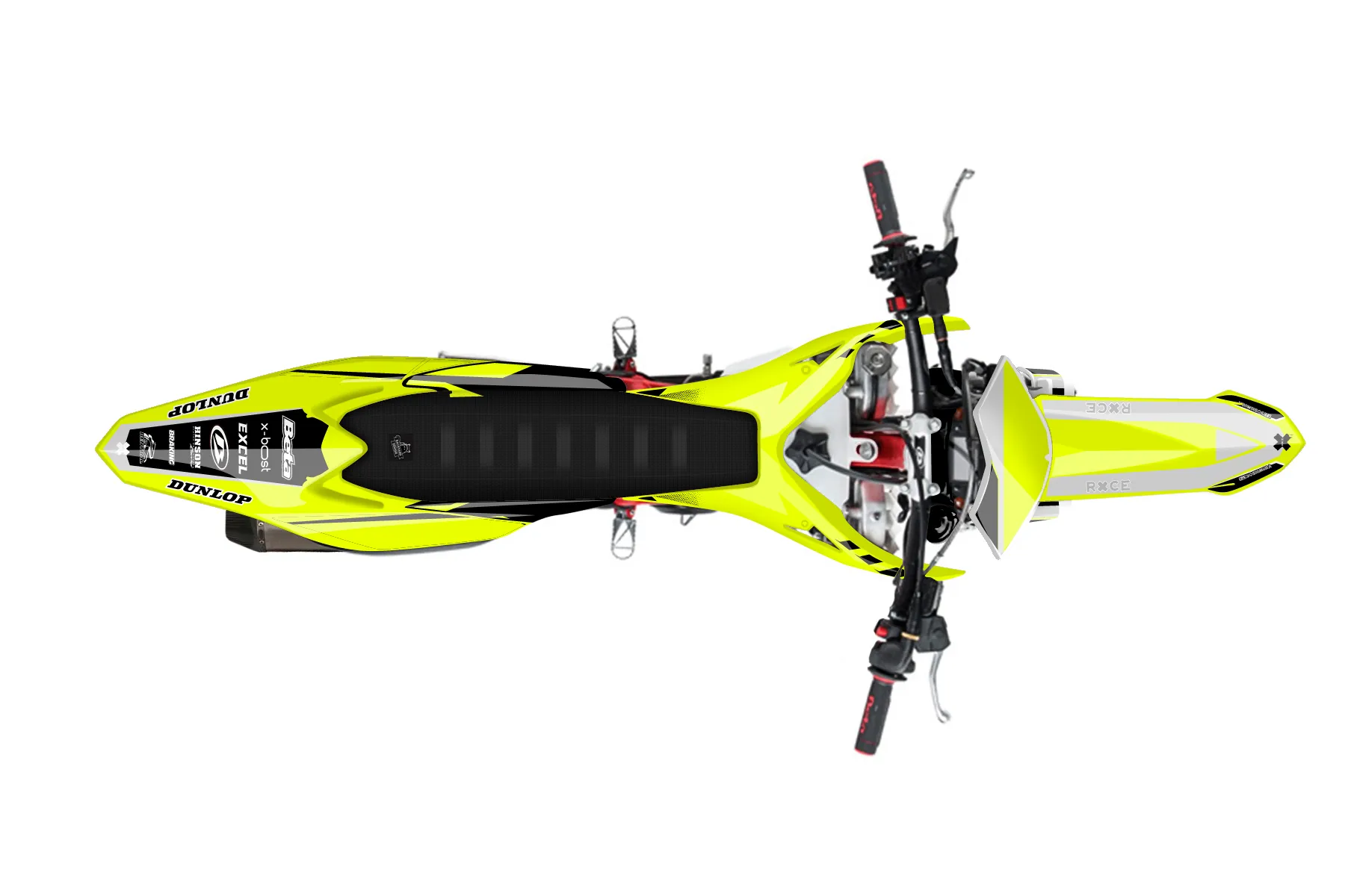«Ryder» — готовый комплект графики серии Maverick для Beta Enduro Graphic Kit Beta RR Polisport Restyle 4 stroke 2021. В комплекте: графика на бак и боковые облицовки, крылья (переднее и заднее), передний щиток, номерные таблички, защита вилки. Материал: ПВХ-винил 80 мкр с холодной ламинацией 300 мкр, общая толщина 380 мкр; покрытие глянцевое или матовое на выбор. Устойчив к UV-излучению, воде, бензину и мойке высокого давления. Клей акриловый на сольвентной основе — постоянный, для гибких пластиков. На простых поверхностях монтируется без нагрева; для сложных изгибов рекомендуем фен. Этот пресет можно заказать как есть или взять за основу в конструкторе: поменять цвета, добавить стартовый номер и свой бренд. Производство — 3–5 рабочих дней, доставка по России СДЭКом или Почтой, по СНГ — курьерскими службами.