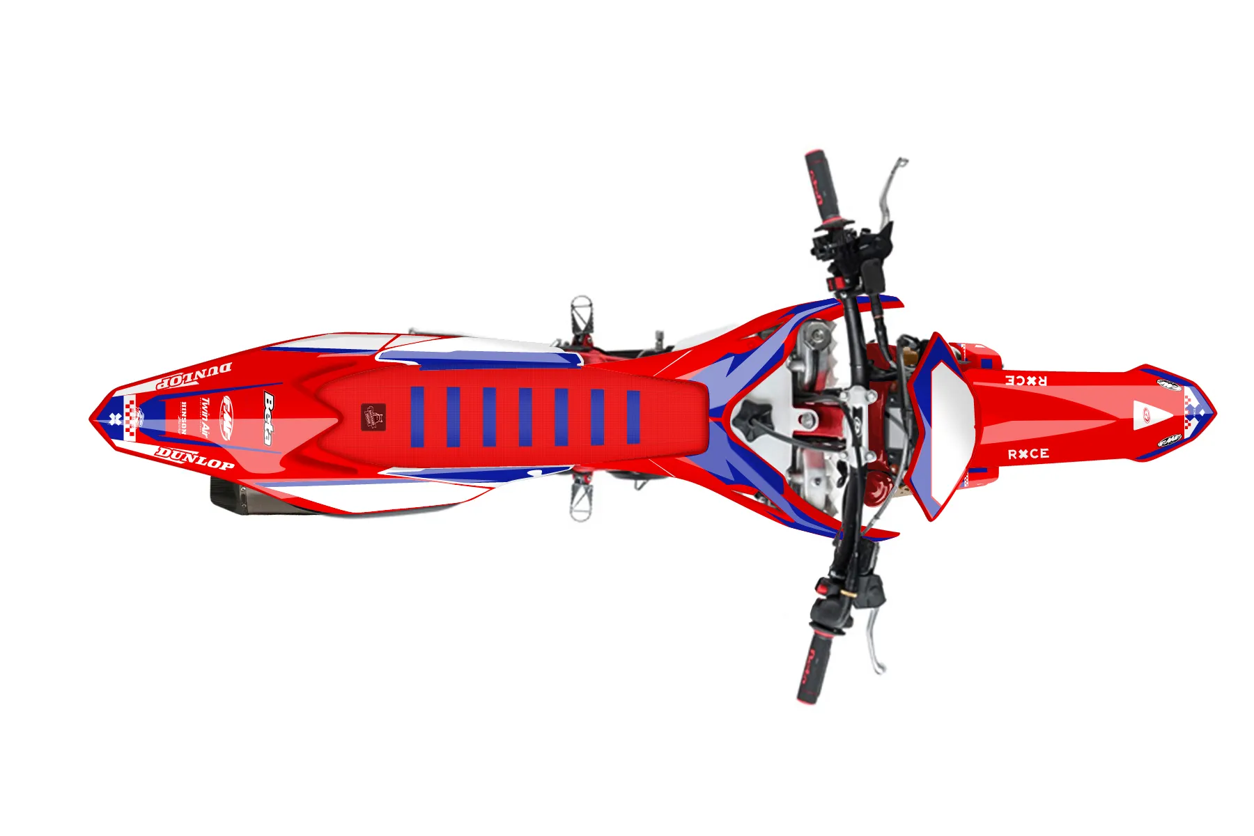 «Swoosh» — готовый комплект графики серии Staple для Beta Enduro Graphic Kit Beta RR Polisport Restyle 4 stroke 2021. В комплекте: графика на бак и боковые облицовки, крылья (переднее и заднее), передний щиток, номерные таблички, защита вилки. Материал: ПВХ-винил 80 мкр с холодной ламинацией 300 мкр, общая толщина 380 мкр; покрытие глянцевое или матовое на выбор. Устойчив к UV-излучению, воде, бензину и мойке высокого давления. Клей акриловый на сольвентной основе — постоянный, для гибких пластиков. На простых поверхностях монтируется без нагрева; для сложных изгибов рекомендуем фен. Этот пресет можно заказать как есть или взять за основу в конструкторе: поменять цвета, добавить стартовый номер и свой бренд. Производство — 3–5 рабочих дней, доставка по России СДЭКом или Почтой, по СНГ — курьерскими службами.