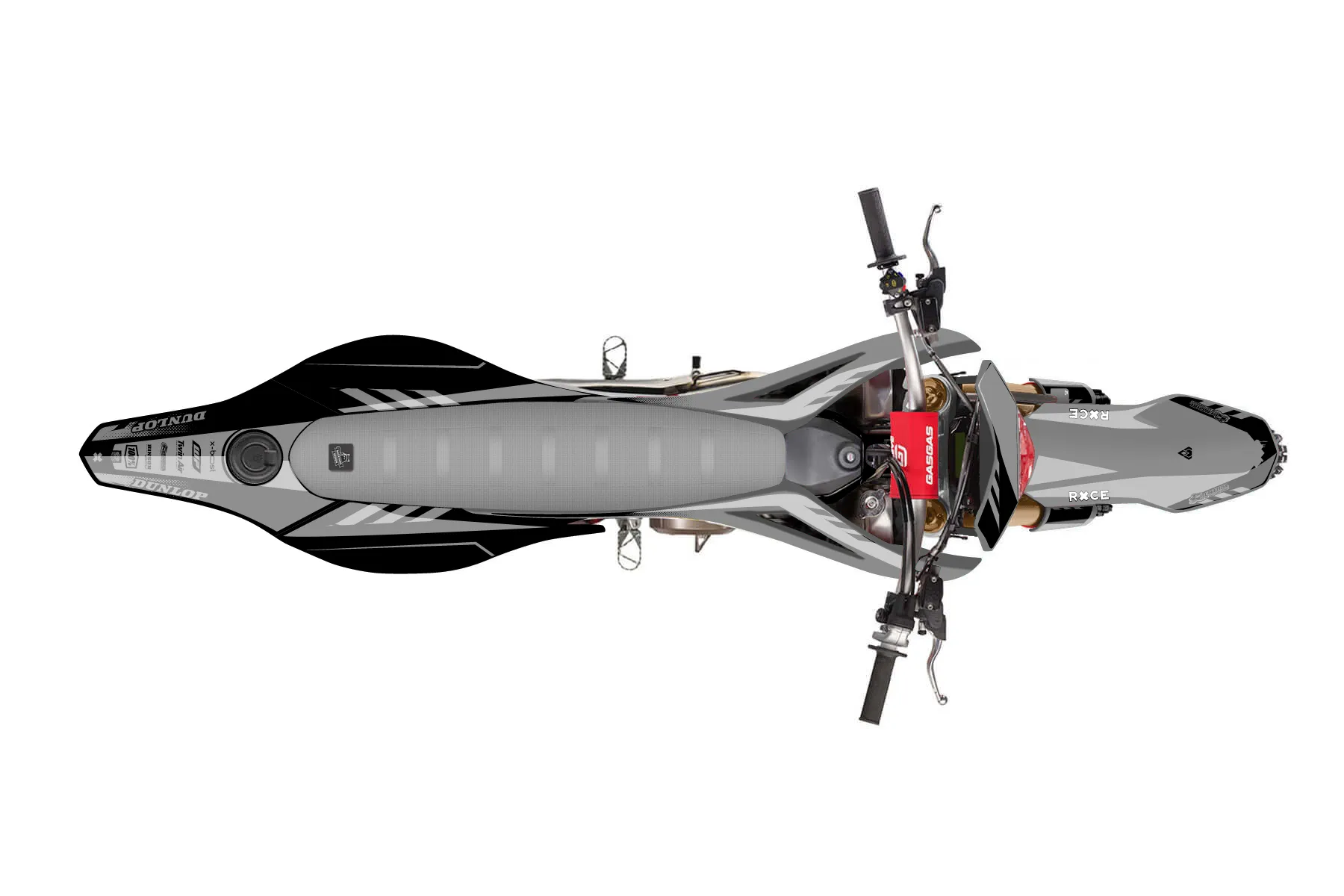 «Tack» — готовый комплект графики серии Maverick для GasGas Enduro Dekor GasGas 700 2024. В комплекте: графика на бак и боковые облицовки, крылья (переднее и заднее), передний щиток, номерные таблички, защита вилки. Материал: ПВХ-винил 80 мкр с холодной ламинацией 300 мкр, общая толщина 380 мкр; покрытие глянцевое или матовое на выбор. Устойчив к UV-излучению, воде, бензину и мойке высокого давления. Клей акриловый на сольвентной основе — постоянный, для гибких пластиков. На простых поверхностях монтируется без нагрева; для сложных изгибов рекомендуем фен. Этот пресет можно заказать как есть или взять за основу в конструкторе: поменять цвета, добавить стартовый номер и свой бренд. Производство — 3–5 рабочих дней, доставка по России СДЭКом или Почтой, по СНГ — курьерскими службами.