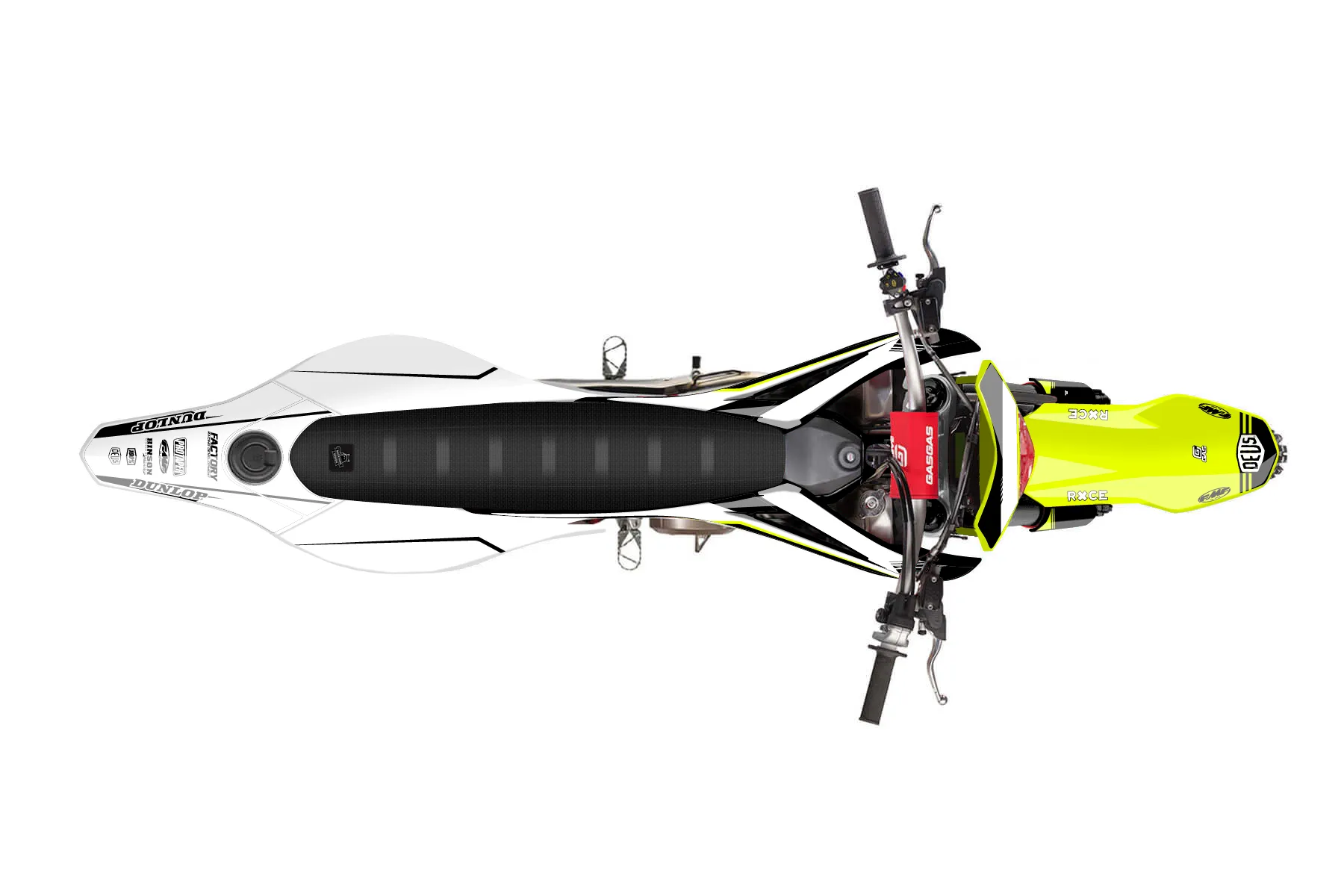 «Kitted Neon» — готовый комплект графики серии Untucked для GasGas Enduro Dekor GasGas 700 2024. В комплекте: графика на бак и боковые облицовки, крылья (переднее и заднее), передний щиток, номерные таблички, защита вилки. Материал: ПВХ-винил 80 мкр с холодной ламинацией 300 мкр, общая толщина 380 мкр; покрытие глянцевое или матовое на выбор. Устойчив к UV-излучению, воде, бензину и мойке высокого давления. Клей акриловый на сольвентной основе — постоянный, для гибких пластиков. На простых поверхностях монтируется без нагрева; для сложных изгибов рекомендуем фен. Этот пресет можно заказать как есть или взять за основу в конструкторе: поменять цвета, добавить стартовый номер и свой бренд. Производство — 3–5 рабочих дней, доставка по России СДЭКом или Почтой, по СНГ — курьерскими службами.