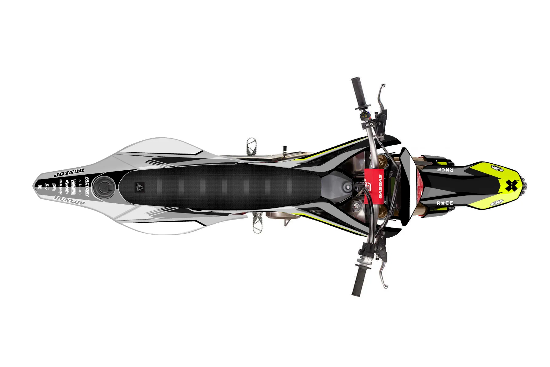 «Ryder Neon» — готовый комплект графики серии Untucked для GasGas Enduro Dekor GasGas 700 2024. В комплекте: графика на бак и боковые облицовки, крылья (переднее и заднее), передний щиток, номерные таблички, защита вилки. Материал: ПВХ-винил 80 мкр с холодной ламинацией 300 мкр, общая толщина 380 мкр; покрытие глянцевое или матовое на выбор. Устойчив к UV-излучению, воде, бензину и мойке высокого давления. Клей акриловый на сольвентной основе — постоянный, для гибких пластиков. На простых поверхностях монтируется без нагрева; для сложных изгибов рекомендуем фен. Этот пресет можно заказать как есть или взять за основу в конструкторе: поменять цвета, добавить стартовый номер и свой бренд. Производство — 3–5 рабочих дней, доставка по России СДЭКом или Почтой, по СНГ — курьерскими службами.
