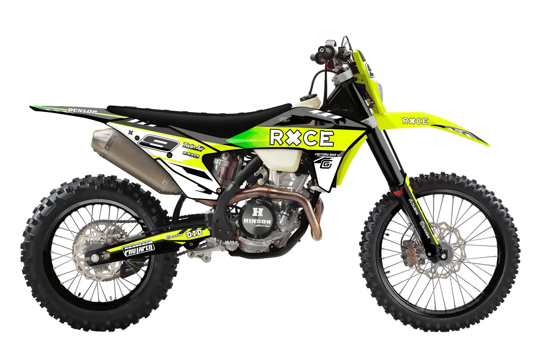 «Bright Neon» — готовый комплект графики серии Maverick для GasGas Enduro Graphic Kit GasGas EC 250-F 2021. В комплекте: графика на бак и боковые облицовки, крылья (переднее и заднее), передний щиток, номерные таблички, защита вилки. Материал: ПВХ-винил 80 мкр с холодной ламинацией 300 мкр, общая толщина 380 мкр; покрытие глянцевое или матовое на выбор. Устойчив к UV-излучению, воде, бензину и мойке высокого давления. Клей акриловый на сольвентной основе — постоянный, для гибких пластиков. На простых поверхностях монтируется без нагрева; для сложных изгибов рекомендуем фен. Этот пресет можно заказать как есть или взять за основу в конструкторе: поменять цвета, добавить стартовый номер и свой бренд. Производство — 3–5 рабочих дней, доставка по России СДЭКом или Почтой, по СНГ — курьерскими службами.