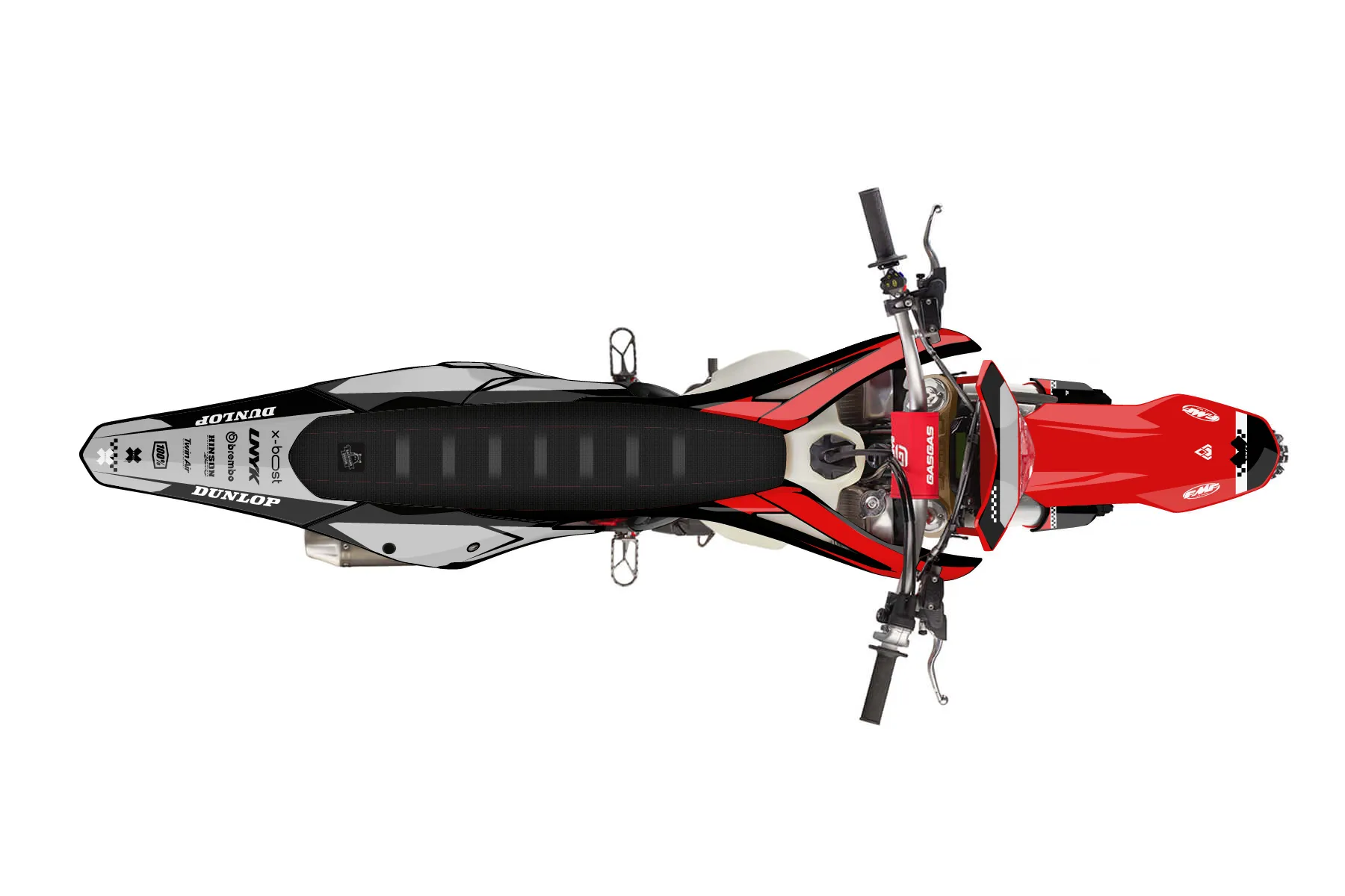 «Beyond» — готовый комплект графики серии Staple для GasGas Enduro Graphic Kit GasGas EC 250-F 2021. В комплекте: графика на бак и боковые облицовки, крылья (переднее и заднее), передний щиток, номерные таблички, защита вилки. Материал: ПВХ-винил 80 мкр с холодной ламинацией 300 мкр, общая толщина 380 мкр; покрытие глянцевое или матовое на выбор. Устойчив к UV-излучению, воде, бензину и мойке высокого давления. Клей акриловый на сольвентной основе — постоянный, для гибких пластиков. На простых поверхностях монтируется без нагрева; для сложных изгибов рекомендуем фен. Этот пресет можно заказать как есть или взять за основу в конструкторе: поменять цвета, добавить стартовый номер и свой бренд. Производство — 3–5 рабочих дней, доставка по России СДЭКом или Почтой, по СНГ — курьерскими службами.