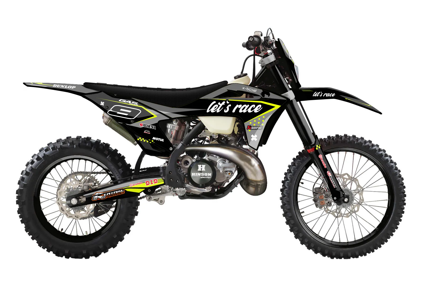 «Worx» — готовый комплект графики серии Staple для GasGas Enduro Graphic Kit GasGas EC 300 2021. В комплекте: графика на бак и боковые облицовки, крылья (переднее и заднее), передний щиток, номерные таблички, защита вилки. Материал: ПВХ-винил 80 мкр с холодной ламинацией 300 мкр, общая толщина 380 мкр; покрытие глянцевое или матовое на выбор. Устойчив к UV-излучению, воде, бензину и мойке высокого давления. Клей акриловый на сольвентной основе — постоянный, для гибких пластиков. На простых поверхностях монтируется без нагрева; для сложных изгибов рекомендуем фен. Этот пресет можно заказать как есть или взять за основу в конструкторе: поменять цвета, добавить стартовый номер и свой бренд. Производство — 3–5 рабочих дней, доставка по России СДЭКом или Почтой, по СНГ — курьерскими службами.