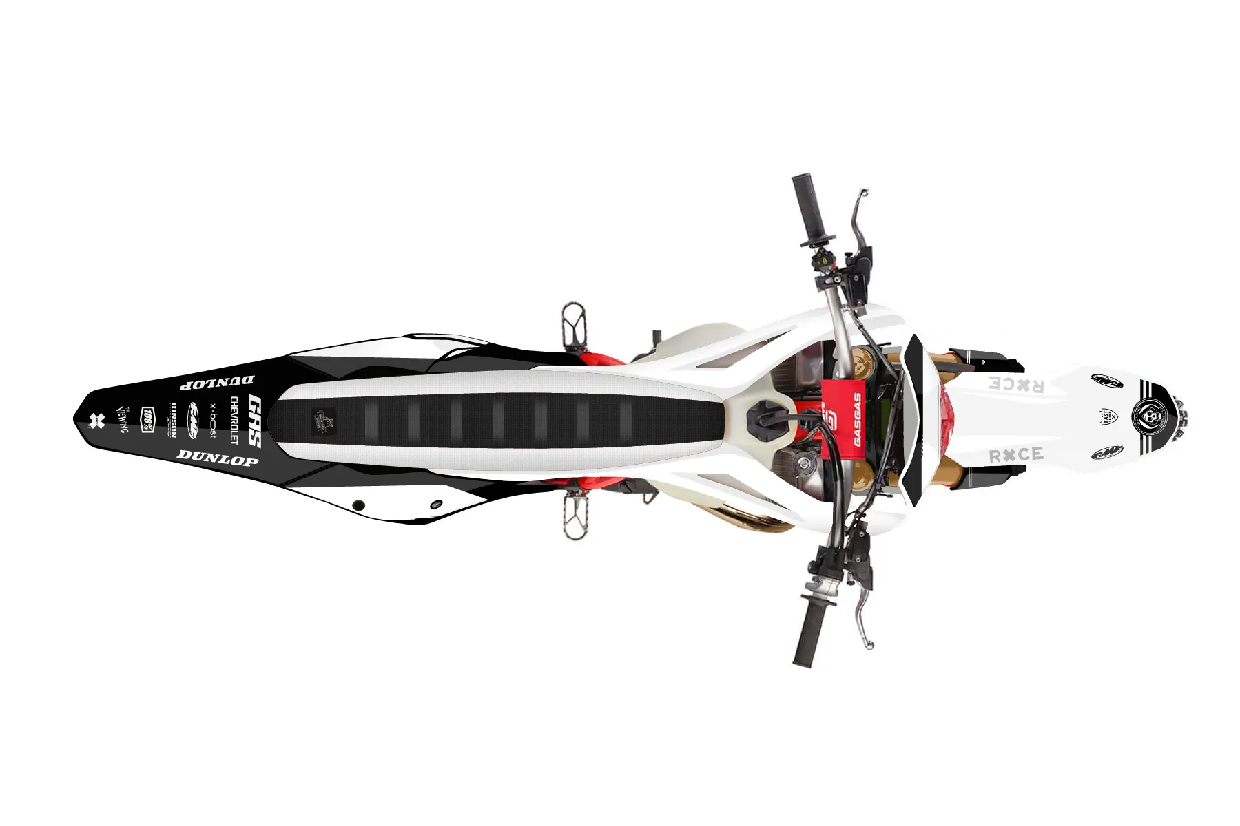 «gasgas 1» — готовый комплект графики серии Untucked для GasGas Enduro Graphic Kit GasGas EC 300 2021. В комплекте: графика на бак и боковые облицовки, крылья (переднее и заднее), передний щиток, номерные таблички, защита вилки. Материал: ПВХ-винил 80 мкр с холодной ламинацией 300 мкр, общая толщина 380 мкр; покрытие глянцевое или матовое на выбор. Устойчив к UV-излучению, воде, бензину и мойке высокого давления. Клей акриловый на сольвентной основе — постоянный, для гибких пластиков. На простых поверхностях монтируется без нагрева; для сложных изгибов рекомендуем фен. Этот пресет можно заказать как есть или взять за основу в конструкторе: поменять цвета, добавить стартовый номер и свой бренд. Производство — 3–5 рабочих дней, доставка по России СДЭКом или Почтой, по СНГ — курьерскими службами.