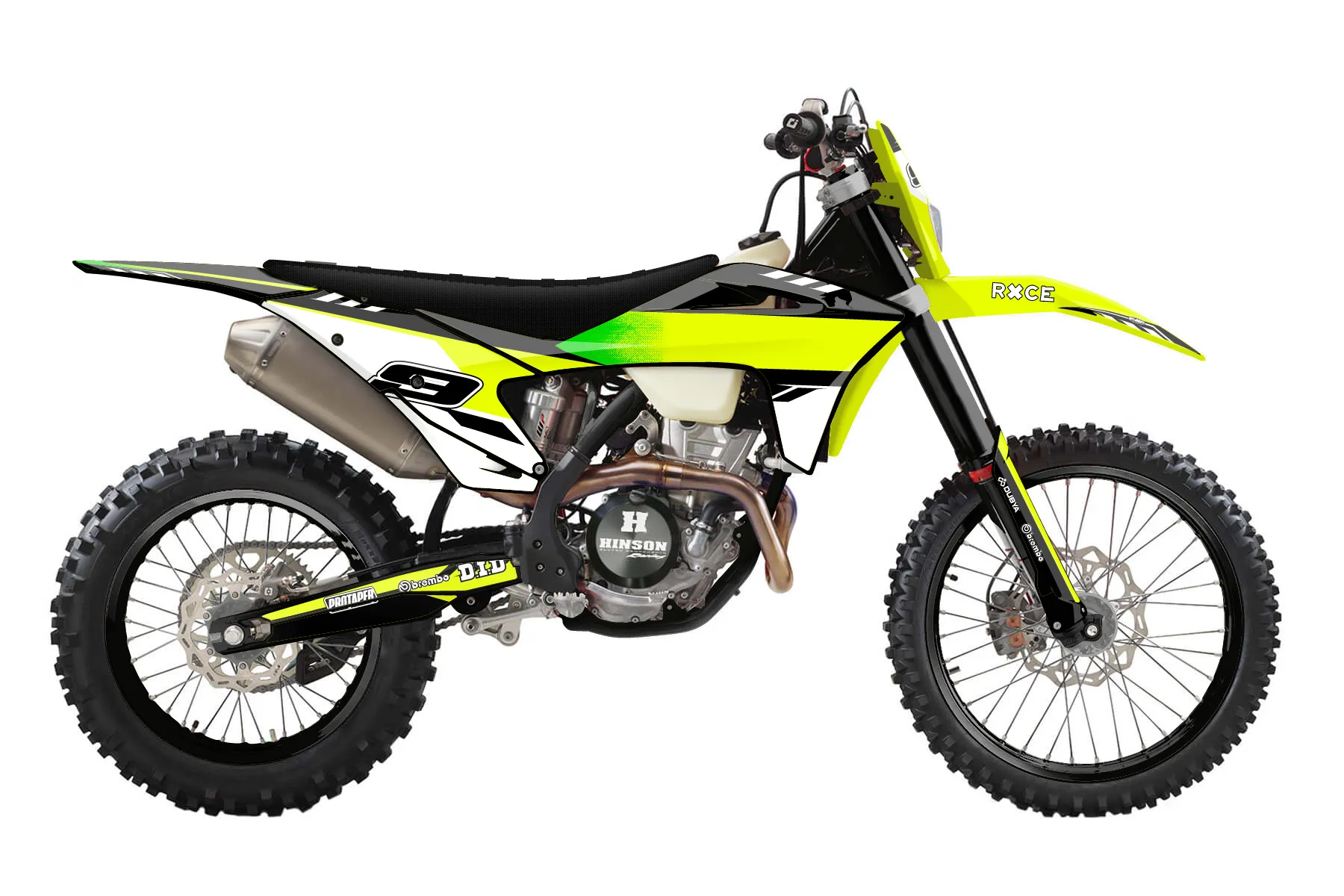 «Bright Neon» — готовый комплект графики серии Maverick для GasGas Enduro Graphic Kit GasGas EC 350-F 2021. В комплекте: графика на бак и боковые облицовки, крылья (переднее и заднее), передний щиток, номерные таблички, защита вилки. Материал: ПВХ-винил 80 мкр с холодной ламинацией 300 мкр, общая толщина 380 мкр; покрытие глянцевое или матовое на выбор. Устойчив к UV-излучению, воде, бензину и мойке высокого давления. Клей акриловый на сольвентной основе — постоянный, для гибких пластиков. На простых поверхностях монтируется без нагрева; для сложных изгибов рекомендуем фен. Этот пресет можно заказать как есть или взять за основу в конструкторе: поменять цвета, добавить стартовый номер и свой бренд. Производство — 3–5 рабочих дней, доставка по России СДЭКом или Почтой, по СНГ — курьерскими службами.