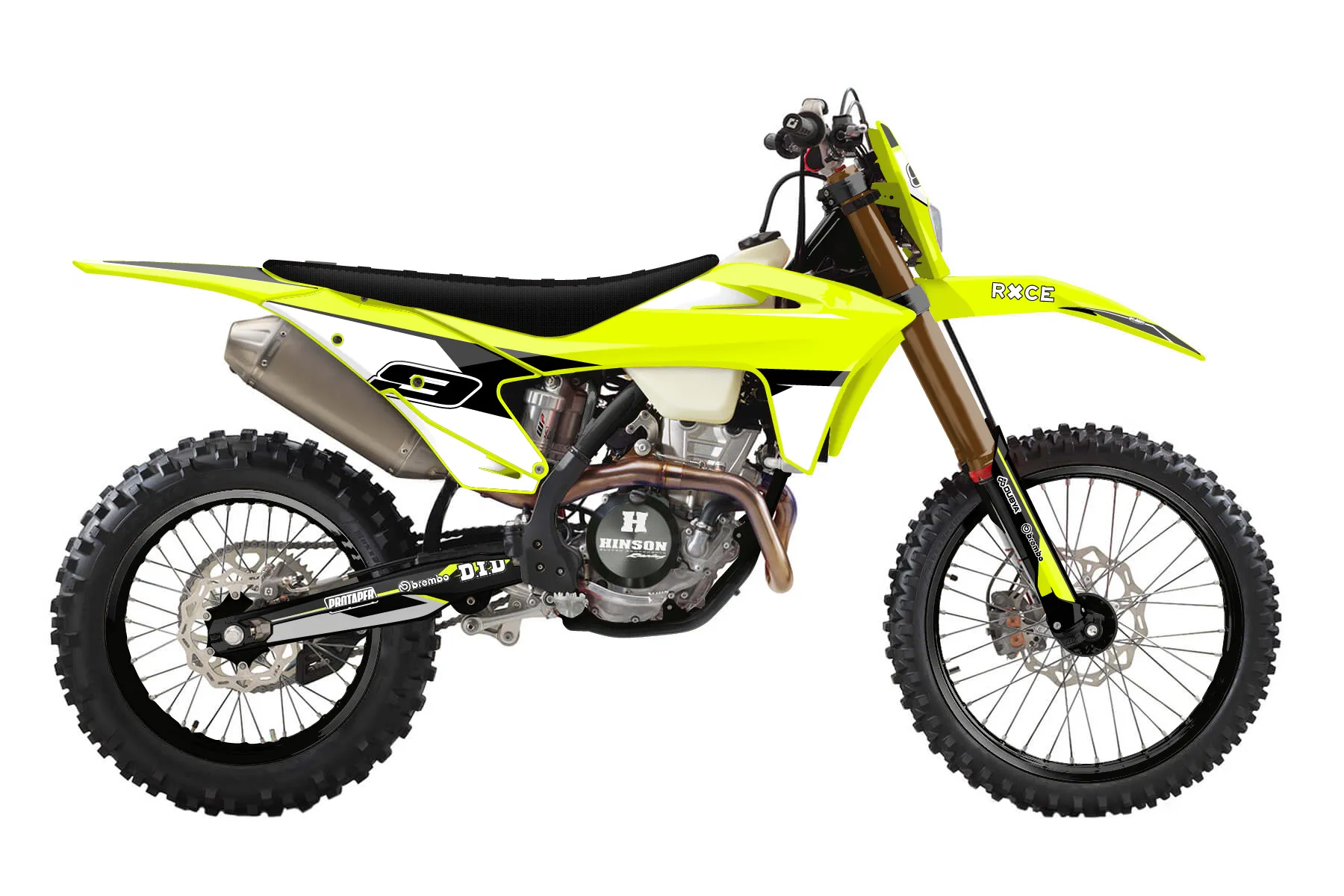«Brilliant Neon» — готовый комплект графики серии Maverick для GasGas Enduro Graphic Kit GasGas EC 350-F 2021. В комплекте: графика на бак и боковые облицовки, крылья (переднее и заднее), передний щиток, номерные таблички, защита вилки. Материал: ПВХ-винил 80 мкр с холодной ламинацией 300 мкр, общая толщина 380 мкр; покрытие глянцевое или матовое на выбор. Устойчив к UV-излучению, воде, бензину и мойке высокого давления. Клей акриловый на сольвентной основе — постоянный, для гибких пластиков. На простых поверхностях монтируется без нагрева; для сложных изгибов рекомендуем фен. Этот пресет можно заказать как есть или взять за основу в конструкторе: поменять цвета, добавить стартовый номер и свой бренд. Производство — 3–5 рабочих дней, доставка по России СДЭКом или Почтой, по СНГ — курьерскими службами.