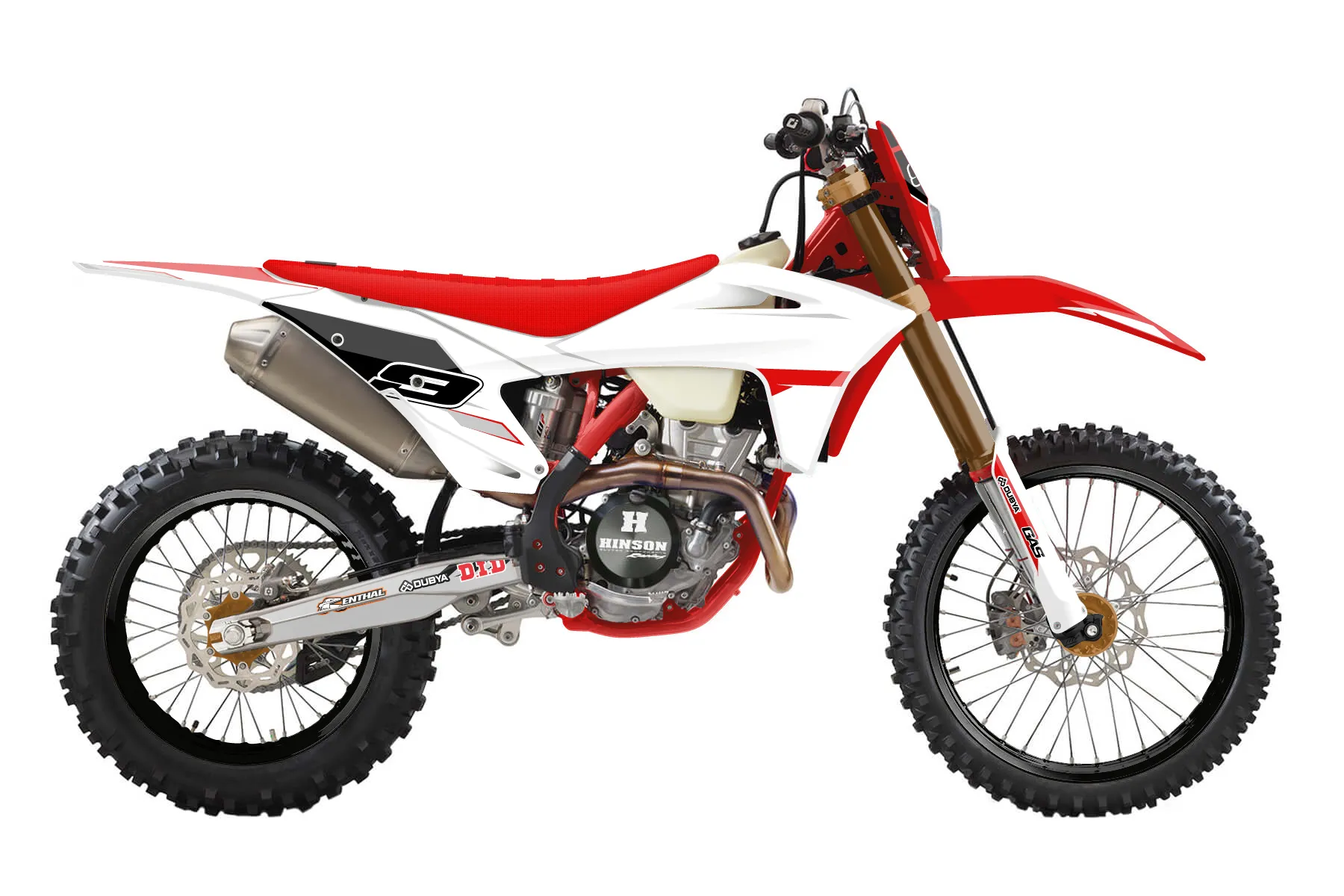 «Class» — готовый комплект графики серии Maverick для GasGas Enduro Graphic Kit GasGas EC 350-F 2021. В комплекте: графика на бак и боковые облицовки, крылья (переднее и заднее), передний щиток, номерные таблички, защита вилки. Материал: ПВХ-винил 80 мкр с холодной ламинацией 300 мкр, общая толщина 380 мкр; покрытие глянцевое или матовое на выбор. Устойчив к UV-излучению, воде, бензину и мойке высокого давления. Клей акриловый на сольвентной основе — постоянный, для гибких пластиков. На простых поверхностях монтируется без нагрева; для сложных изгибов рекомендуем фен. Этот пресет можно заказать как есть или взять за основу в конструкторе: поменять цвета, добавить стартовый номер и свой бренд. Производство — 3–5 рабочих дней, доставка по России СДЭКом или Почтой, по СНГ — курьерскими службами.