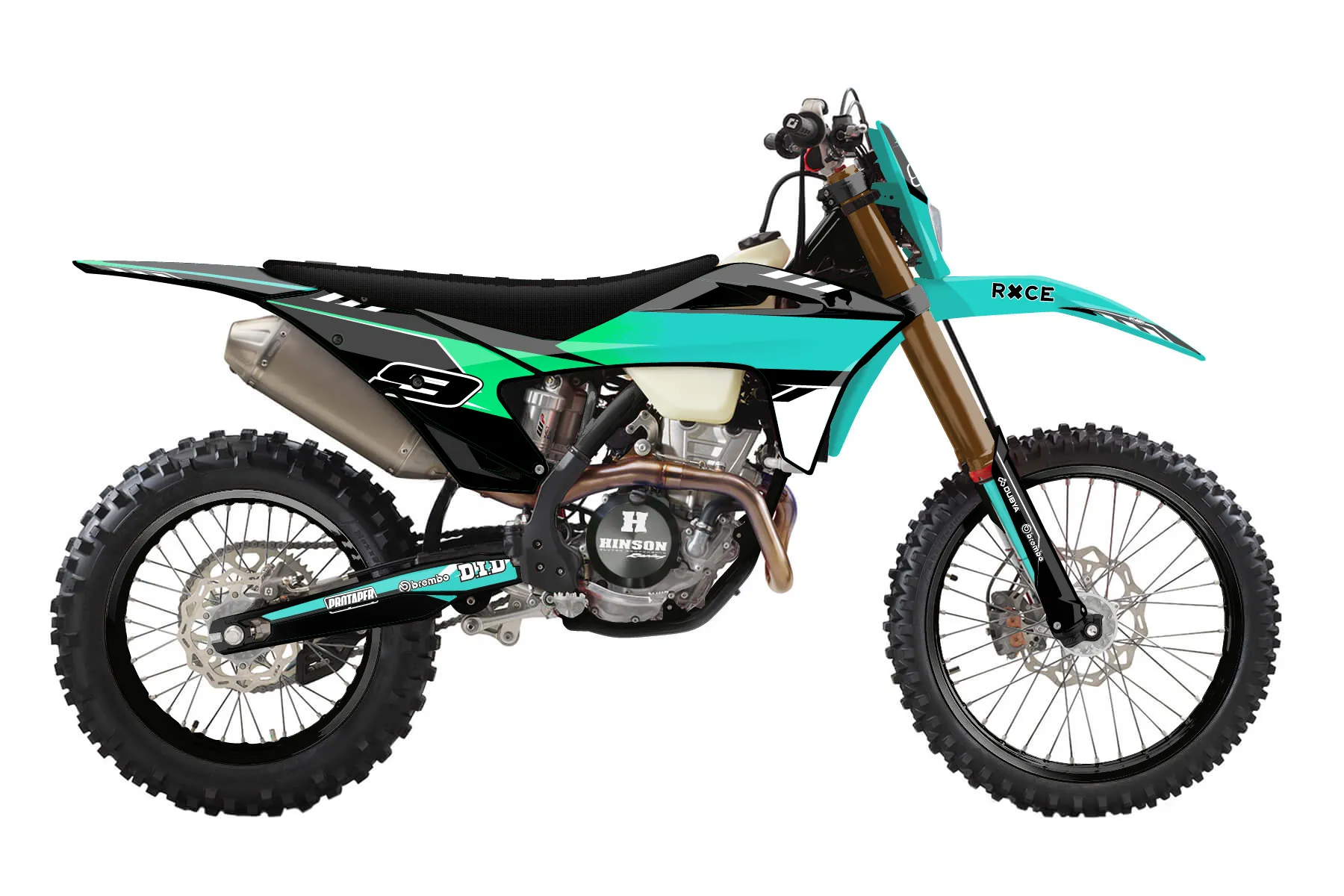 «Drizzle» — готовый комплект графики серии Maverick для GasGas Enduro Graphic Kit GasGas EC 350-F 2021. В комплекте: графика на бак и боковые облицовки, крылья (переднее и заднее), передний щиток, номерные таблички, защита вилки. Материал: ПВХ-винил 80 мкр с холодной ламинацией 300 мкр, общая толщина 380 мкр; покрытие глянцевое или матовое на выбор. Устойчив к UV-излучению, воде, бензину и мойке высокого давления. Клей акриловый на сольвентной основе — постоянный, для гибких пластиков. На простых поверхностях монтируется без нагрева; для сложных изгибов рекомендуем фен. Этот пресет можно заказать как есть или взять за основу в конструкторе: поменять цвета, добавить стартовый номер и свой бренд. Производство — 3–5 рабочих дней, доставка по России СДЭКом или Почтой, по СНГ — курьерскими службами.