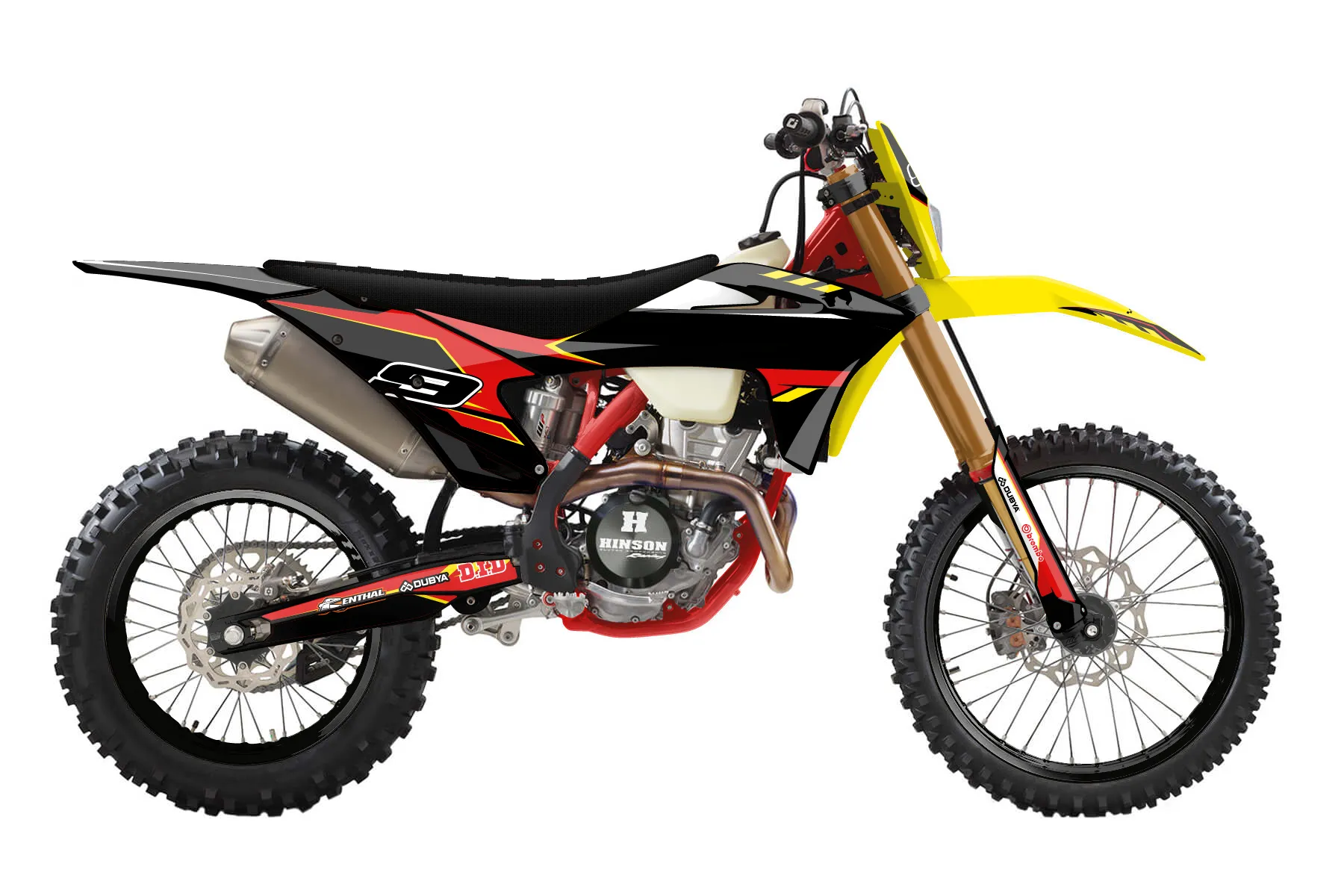 «Filter» — готовый комплект графики серии Maverick для GasGas Enduro Graphic Kit GasGas EC 350-F 2021. В комплекте: графика на бак и боковые облицовки, крылья (переднее и заднее), передний щиток, номерные таблички, защита вилки. Материал: ПВХ-винил 80 мкр с холодной ламинацией 300 мкр, общая толщина 380 мкр; покрытие глянцевое или матовое на выбор. Устойчив к UV-излучению, воде, бензину и мойке высокого давления. Клей акриловый на сольвентной основе — постоянный, для гибких пластиков. На простых поверхностях монтируется без нагрева; для сложных изгибов рекомендуем фен. Этот пресет можно заказать как есть или взять за основу в конструкторе: поменять цвета, добавить стартовый номер и свой бренд. Производство — 3–5 рабочих дней, доставка по России СДЭКом или Почтой, по СНГ — курьерскими службами.