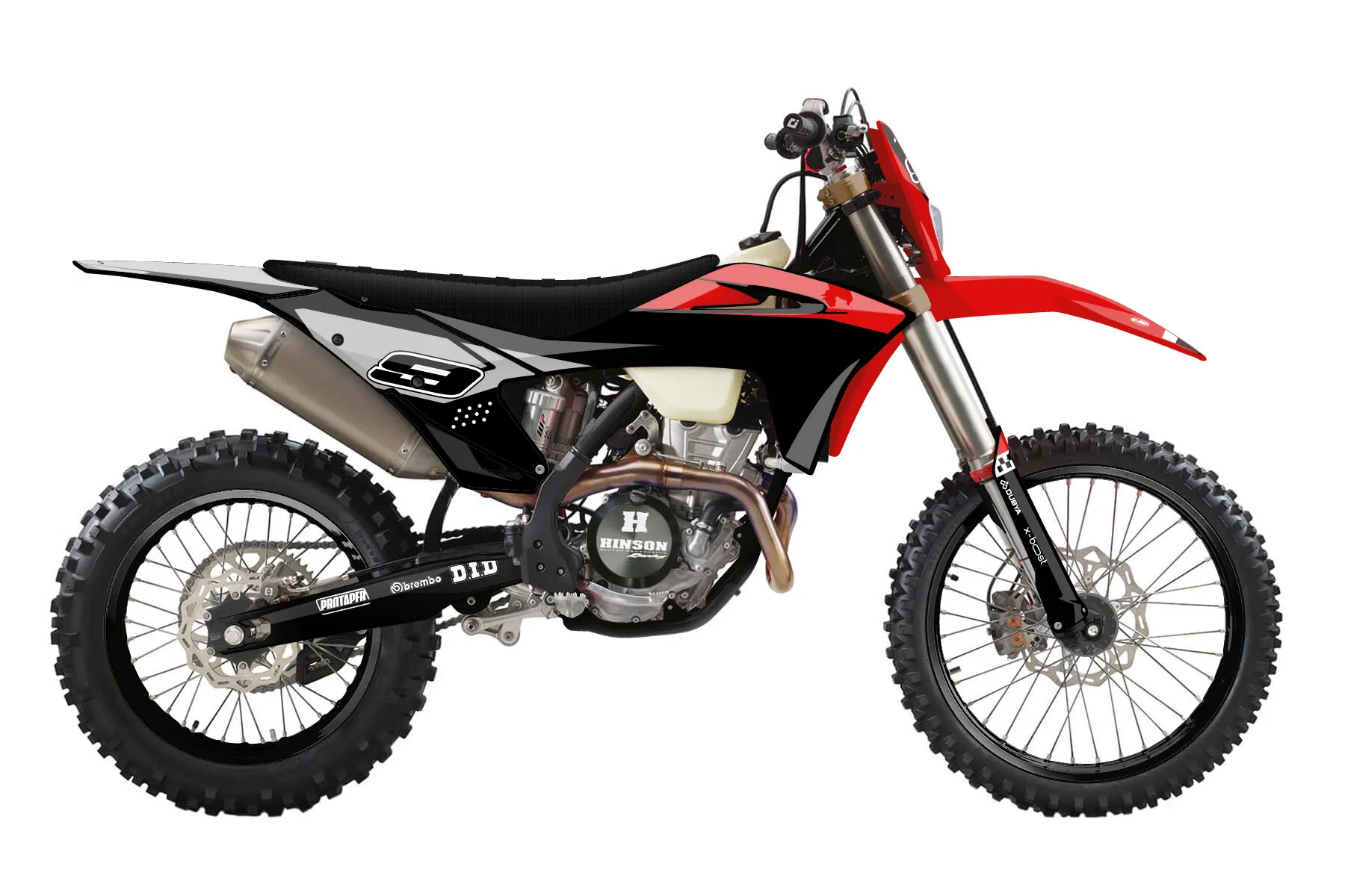 «Beyond» — готовый комплект графики серии Staple для GasGas Enduro Graphic Kit GasGas EC 350-F 2021. В комплекте: графика на бак и боковые облицовки, крылья (переднее и заднее), передний щиток, номерные таблички, защита вилки. Материал: ПВХ-винил 80 мкр с холодной ламинацией 300 мкр, общая толщина 380 мкр; покрытие глянцевое или матовое на выбор. Устойчив к UV-излучению, воде, бензину и мойке высокого давления. Клей акриловый на сольвентной основе — постоянный, для гибких пластиков. На простых поверхностях монтируется без нагрева; для сложных изгибов рекомендуем фен. Этот пресет можно заказать как есть или взять за основу в конструкторе: поменять цвета, добавить стартовый номер и свой бренд. Производство — 3–5 рабочих дней, доставка по России СДЭКом или Почтой, по СНГ — курьерскими службами.