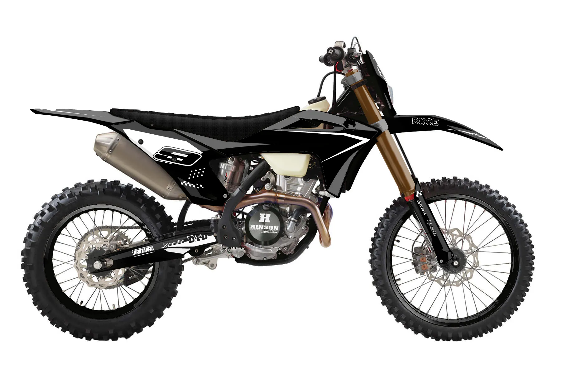 «Visonary» — готовый комплект графики серии Staple для GasGas Enduro Graphic Kit GasGas EC 350-F 2021. В комплекте: графика на бак и боковые облицовки, крылья (переднее и заднее), передний щиток, номерные таблички, защита вилки. Материал: ПВХ-винил 80 мкр с холодной ламинацией 300 мкр, общая толщина 380 мкр; покрытие глянцевое или матовое на выбор. Устойчив к UV-излучению, воде, бензину и мойке высокого давления. Клей акриловый на сольвентной основе — постоянный, для гибких пластиков. На простых поверхностях монтируется без нагрева; для сложных изгибов рекомендуем фен. Этот пресет можно заказать как есть или взять за основу в конструкторе: поменять цвета, добавить стартовый номер и свой бренд. Производство — 3–5 рабочих дней, доставка по России СДЭКом или Почтой, по СНГ — курьерскими службами.