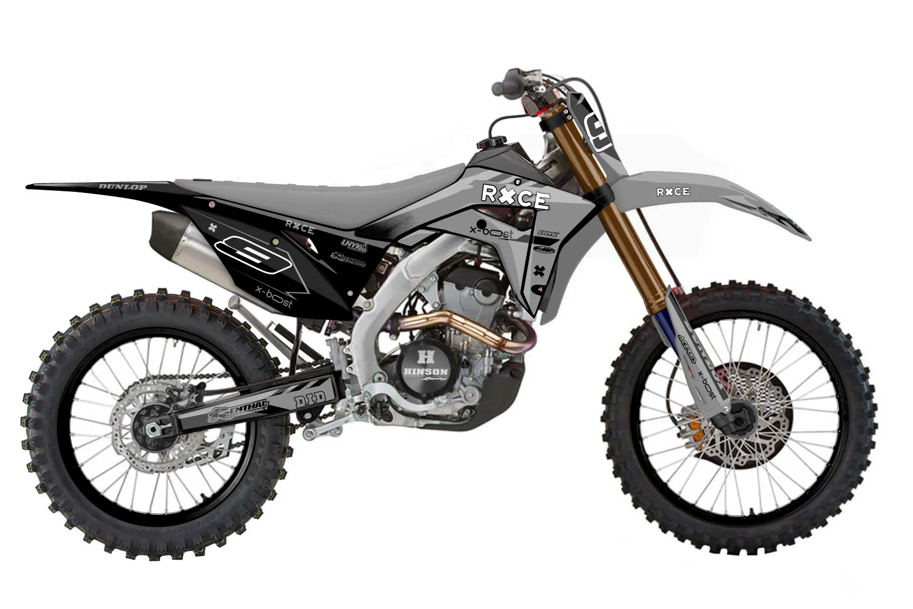 «Rise» — готовый комплект графики серии Maverick для Honda Enduro Graphic Kit Honda CRF 250 RX 2019. В комплекте: графика на бак и боковые облицовки, крылья (переднее и заднее), передний щиток, номерные таблички, защита вилки. Материал: ПВХ-винил 80 мкр с холодной ламинацией 300 мкр, общая толщина 380 мкр; покрытие глянцевое или матовое на выбор. Устойчив к UV-излучению, воде, бензину и мойке высокого давления. Клей акриловый на сольвентной основе — постоянный, для гибких пластиков. На простых поверхностях монтируется без нагрева; для сложных изгибов рекомендуем фен. Этот пресет можно заказать как есть или взять за основу в конструкторе: поменять цвета, добавить стартовый номер и свой бренд. Производство — 3–5 рабочих дней, доставка по России СДЭКом или Почтой, по СНГ — курьерскими службами.