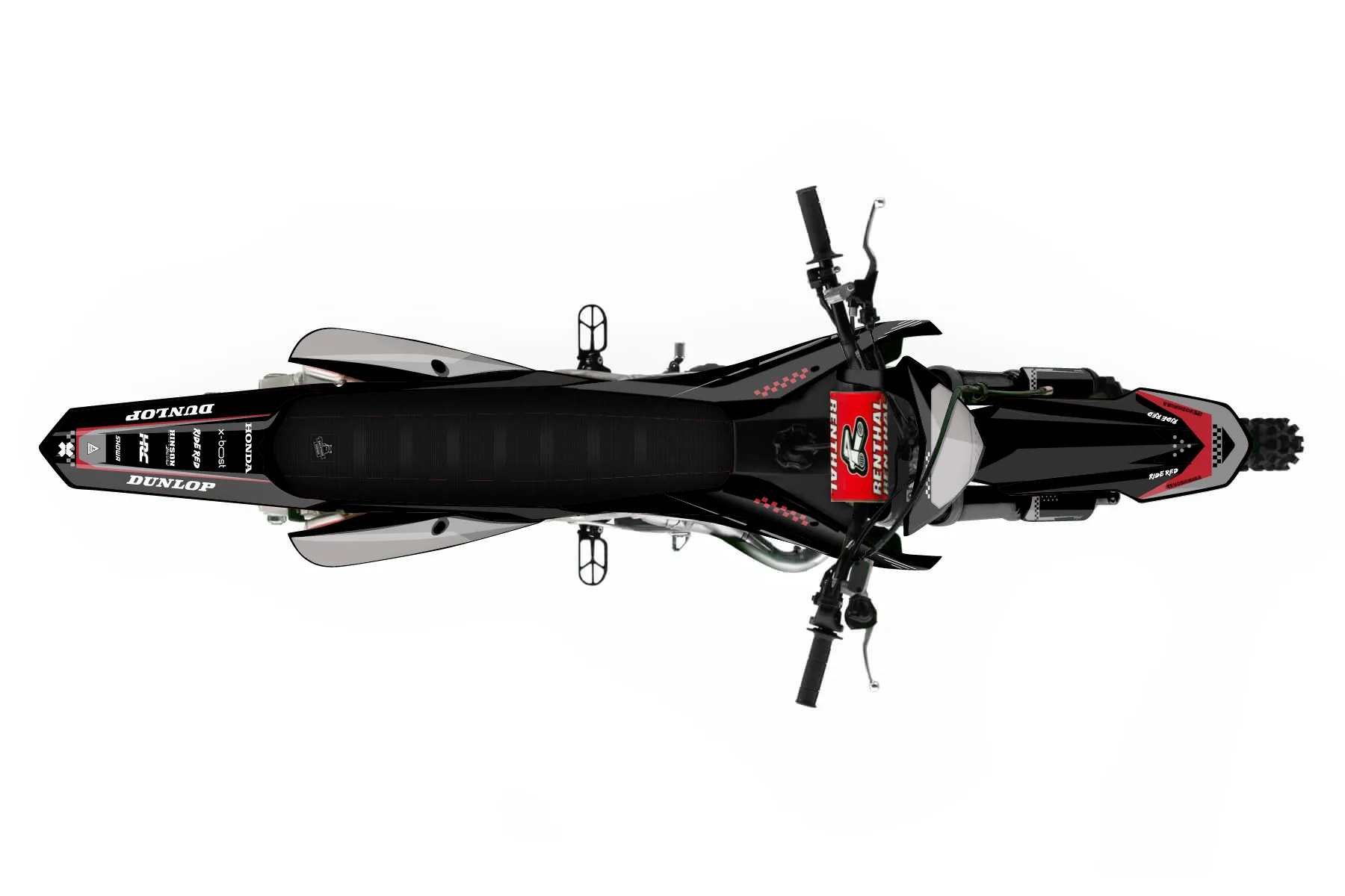 «red grey » — готовый комплект графики серии Staple для Honda Enduro Graphic Kit Honda CRF 250 RX 2019. В комплекте: графика на бак и боковые облицовки, крылья (переднее и заднее), передний щиток, номерные таблички, защита вилки. Материал: ПВХ-винил 80 мкр с холодной ламинацией 300 мкр, общая толщина 380 мкр; покрытие глянцевое или матовое на выбор. Устойчив к UV-излучению, воде, бензину и мойке высокого давления. Клей акриловый на сольвентной основе — постоянный, для гибких пластиков. На простых поверхностях монтируется без нагрева; для сложных изгибов рекомендуем фен. Этот пресет можно заказать как есть или взять за основу в конструкторе: поменять цвета, добавить стартовый номер и свой бренд. Производство — 3–5 рабочих дней, доставка по России СДЭКом или Почтой, по СНГ — курьерскими службами.