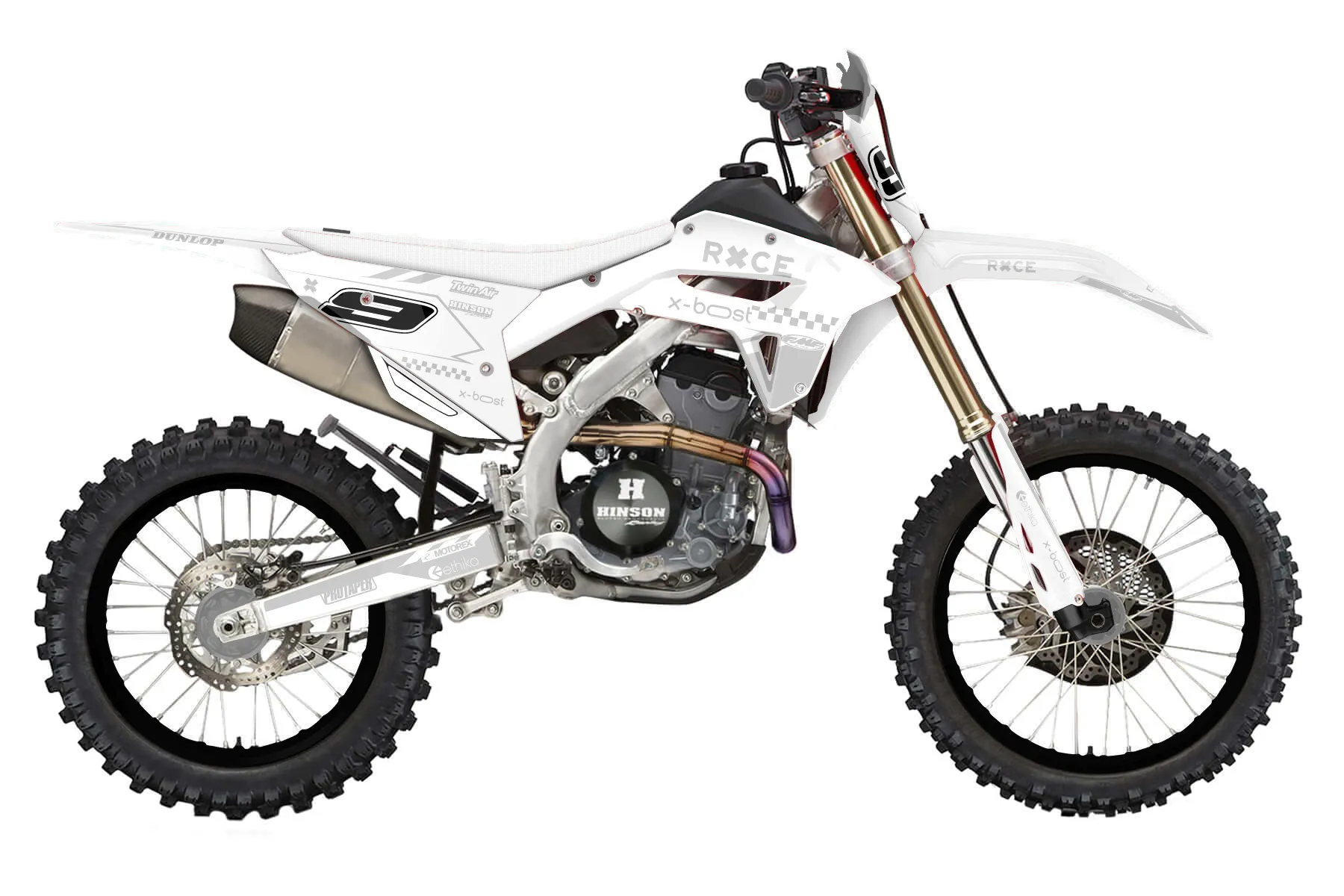 «Ghost» — готовый комплект графики серии Maverick для Honda Enduro Graphic Kit Honda CRF 250 RX 2022. В комплекте: графика на бак и боковые облицовки, крылья (переднее и заднее), передний щиток, номерные таблички, защита вилки. Материал: ПВХ-винил 80 мкр с холодной ламинацией 300 мкр, общая толщина 380 мкр; покрытие глянцевое или матовое на выбор. Устойчив к UV-излучению, воде, бензину и мойке высокого давления. Клей акриловый на сольвентной основе — постоянный, для гибких пластиков. На простых поверхностях монтируется без нагрева; для сложных изгибов рекомендуем фен. Этот пресет можно заказать как есть или взять за основу в конструкторе: поменять цвета, добавить стартовый номер и свой бренд. Производство — 3–5 рабочих дней, доставка по России СДЭКом или Почтой, по СНГ — курьерскими службами.
