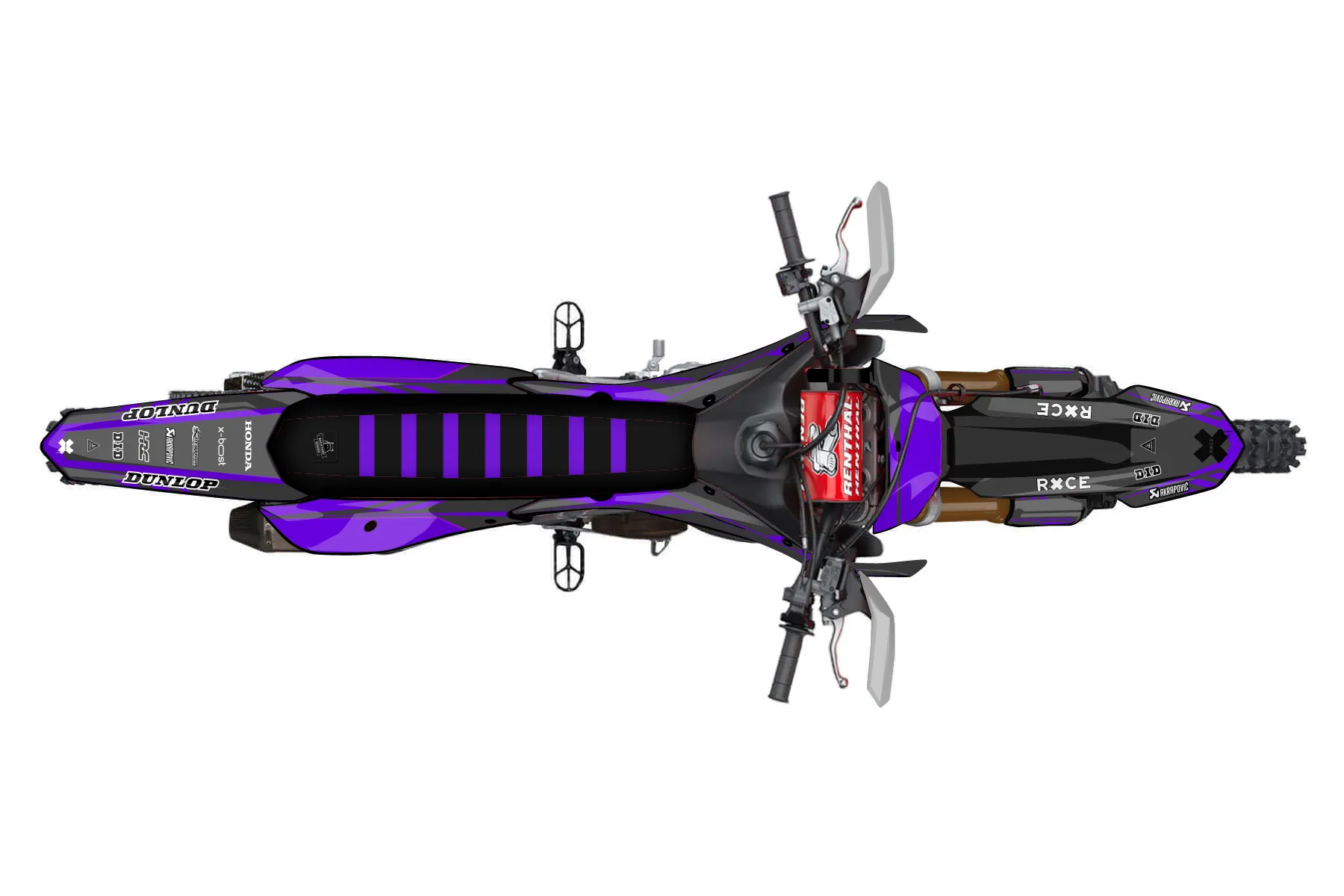 «order purple» — готовый комплект графики серии Maverick для Honda Enduro Graphic Kit Honda CRF 250 RX 2022. В комплекте: графика на бак и боковые облицовки, крылья (переднее и заднее), передний щиток, номерные таблички, защита вилки. Материал: ПВХ-винил 80 мкр с холодной ламинацией 300 мкр, общая толщина 380 мкр; покрытие глянцевое или матовое на выбор. Устойчив к UV-излучению, воде, бензину и мойке высокого давления. Клей акриловый на сольвентной основе — постоянный, для гибких пластиков. На простых поверхностях монтируется без нагрева; для сложных изгибов рекомендуем фен. Этот пресет можно заказать как есть или взять за основу в конструкторе: поменять цвета, добавить стартовый номер и свой бренд. Производство — 3–5 рабочих дней, доставка по России СДЭКом или Почтой, по СНГ — курьерскими службами.