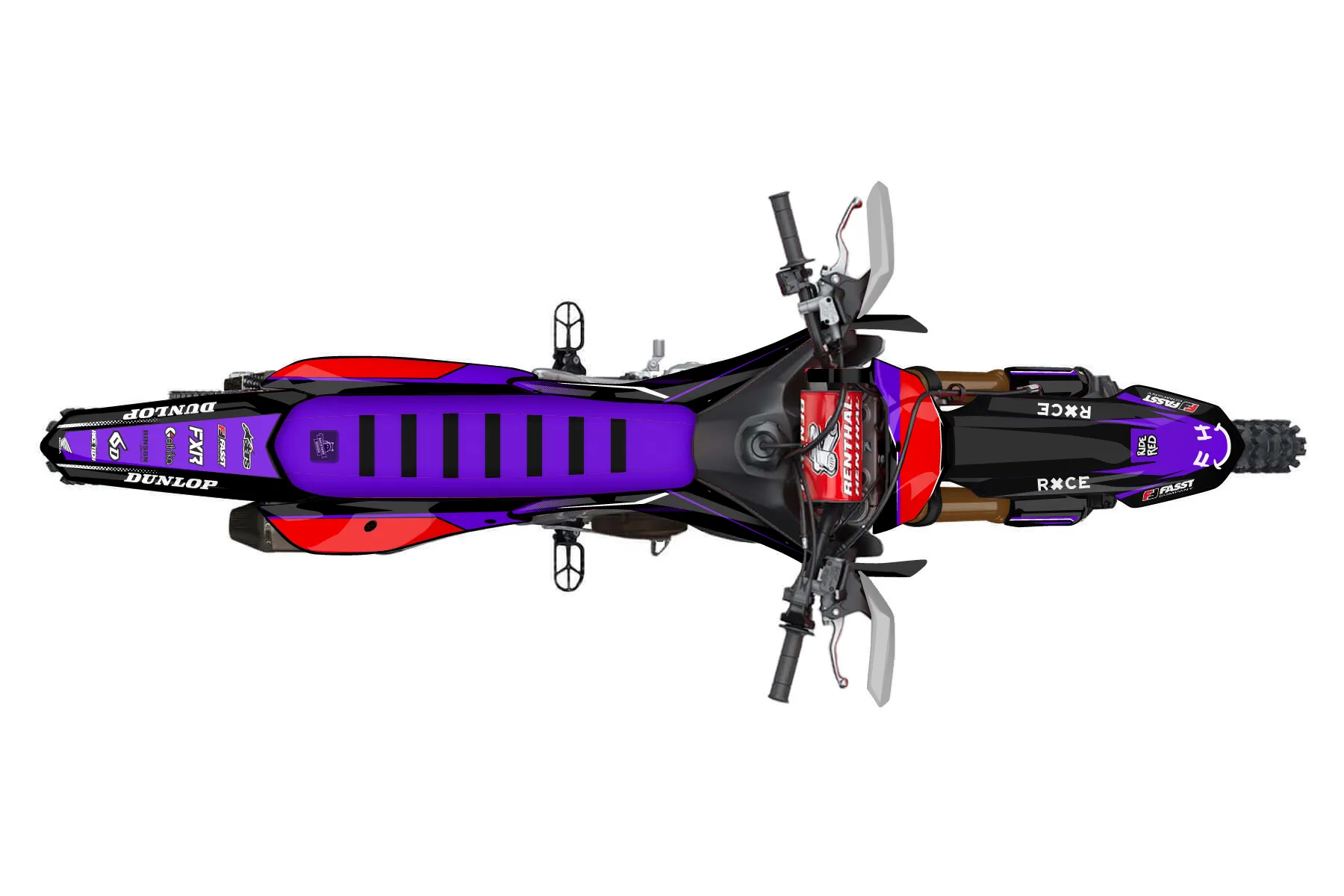 «purple» — готовый комплект графики серии Maverick для Honda Enduro Graphic Kit Honda CRF 250 RX 2022. В комплекте: графика на бак и боковые облицовки, крылья (переднее и заднее), передний щиток, номерные таблички, защита вилки. Материал: ПВХ-винил 80 мкр с холодной ламинацией 300 мкр, общая толщина 380 мкр; покрытие глянцевое или матовое на выбор. Устойчив к UV-излучению, воде, бензину и мойке высокого давления. Клей акриловый на сольвентной основе — постоянный, для гибких пластиков. На простых поверхностях монтируется без нагрева; для сложных изгибов рекомендуем фен. Этот пресет можно заказать как есть или взять за основу в конструкторе: поменять цвета, добавить стартовый номер и свой бренд. Производство — 3–5 рабочих дней, доставка по России СДЭКом или Почтой, по СНГ — курьерскими службами.