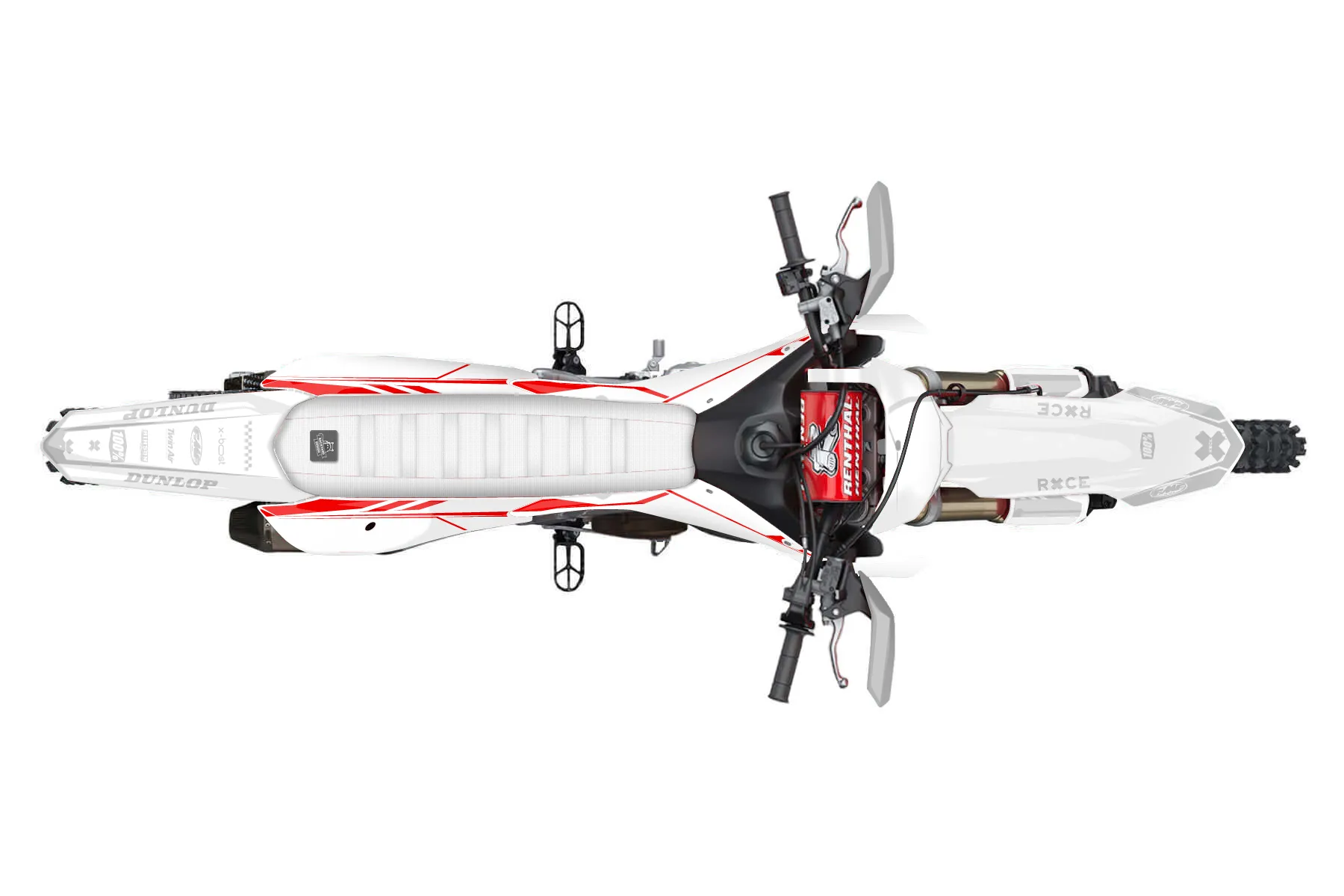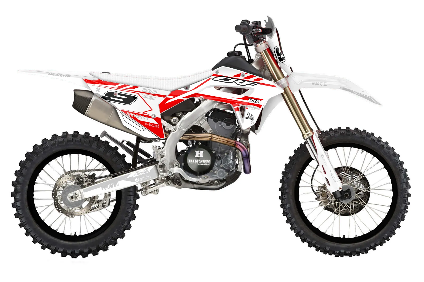 «red and white » — готовый комплект графики серии Maverick для Honda Enduro Graphic Kit Honda CRF 250 RX 2022. В комплекте: графика на бак и боковые облицовки, крылья (переднее и заднее), передний щиток, номерные таблички, защита вилки. Материал: ПВХ-винил 80 мкр с холодной ламинацией 300 мкр, общая толщина 380 мкр; покрытие глянцевое или матовое на выбор. Устойчив к UV-излучению, воде, бензину и мойке высокого давления. Клей акриловый на сольвентной основе — постоянный, для гибких пластиков. На простых поверхностях монтируется без нагрева; для сложных изгибов рекомендуем фен. Этот пресет можно заказать как есть или взять за основу в конструкторе: поменять цвета, добавить стартовый номер и свой бренд. Производство — 3–5 рабочих дней, доставка по России СДЭКом или Почтой, по СНГ — курьерскими службами.