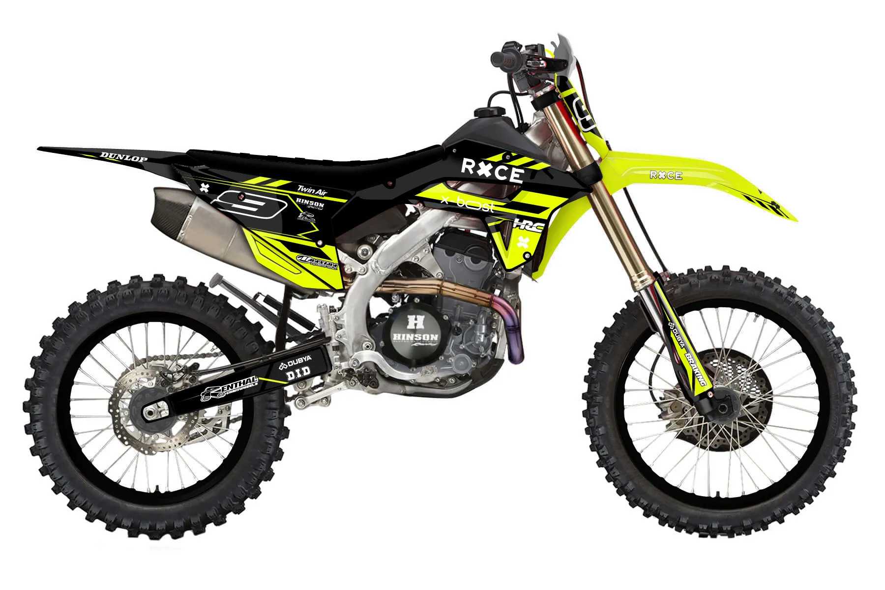 «Vivid Neon» — готовый комплект графики серии Maverick для Honda Enduro Graphic Kit Honda CRF 250 RX 2022. В комплекте: графика на бак и боковые облицовки, крылья (переднее и заднее), передний щиток, номерные таблички, защита вилки. Материал: ПВХ-винил 80 мкр с холодной ламинацией 300 мкр, общая толщина 380 мкр; покрытие глянцевое или матовое на выбор. Устойчив к UV-излучению, воде, бензину и мойке высокого давления. Клей акриловый на сольвентной основе — постоянный, для гибких пластиков. На простых поверхностях монтируется без нагрева; для сложных изгибов рекомендуем фен. Этот пресет можно заказать как есть или взять за основу в конструкторе: поменять цвета, добавить стартовый номер и свой бренд. Производство — 3–5 рабочих дней, доставка по России СДЭКом или Почтой, по СНГ — курьерскими службами.