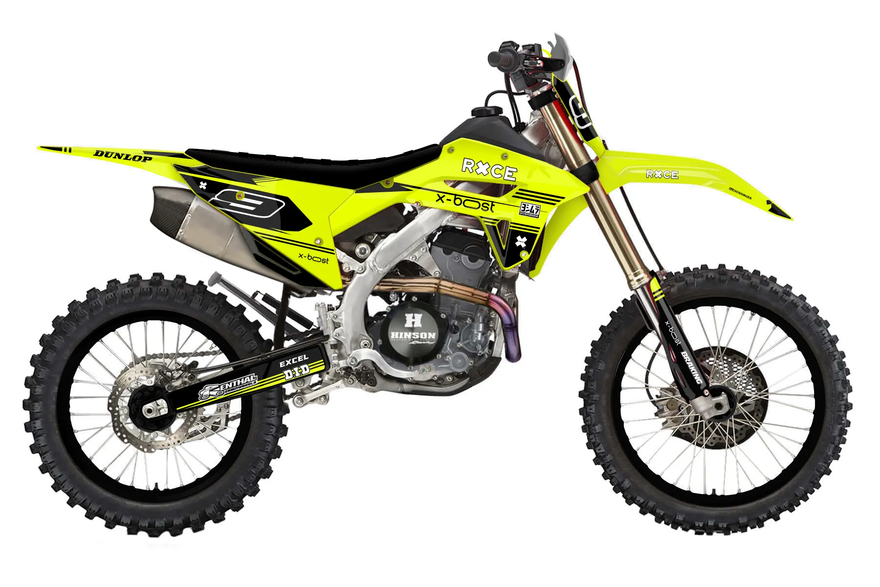 «Lusty Neon» — готовый комплект графики серии Untucked для Honda Enduro Graphic Kit Honda CRF 250 RX 2022. В комплекте: графика на бак и боковые облицовки, крылья (переднее и заднее), передний щиток, номерные таблички, защита вилки. Материал: ПВХ-винил 80 мкр с холодной ламинацией 300 мкр, общая толщина 380 мкр; покрытие глянцевое или матовое на выбор. Устойчив к UV-излучению, воде, бензину и мойке высокого давления. Клей акриловый на сольвентной основе — постоянный, для гибких пластиков. На простых поверхностях монтируется без нагрева; для сложных изгибов рекомендуем фен. Этот пресет можно заказать как есть или взять за основу в конструкторе: поменять цвета, добавить стартовый номер и свой бренд. Производство — 3–5 рабочих дней, доставка по России СДЭКом или Почтой, по СНГ — курьерскими службами.