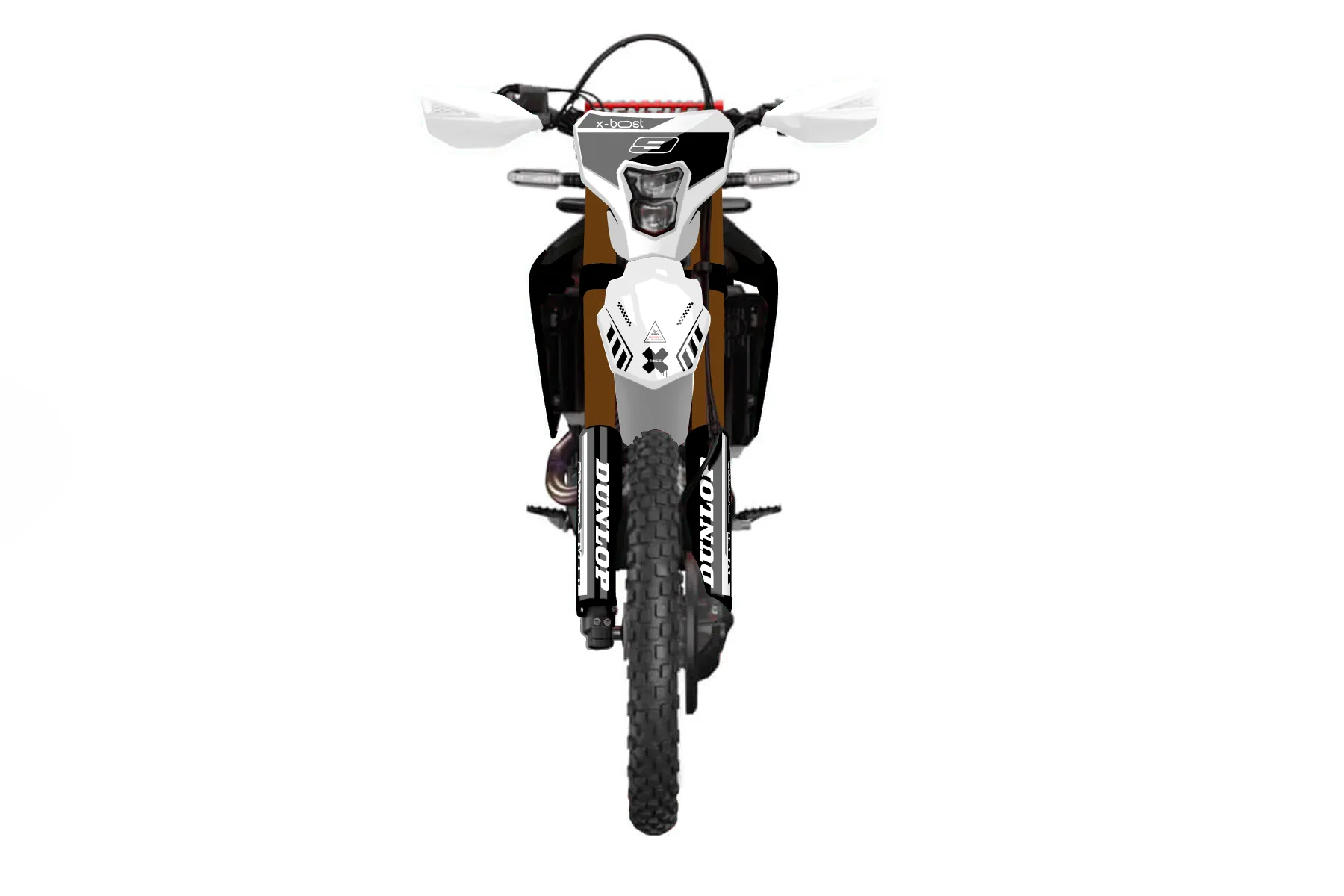 «Canon» — готовый комплект графики серии Maverick для Honda Enduro Graphic Kit Honda CRF 450 RL 2019. В комплекте: графика на бак и боковые облицовки, крылья (переднее и заднее), передний щиток, номерные таблички, защита вилки. Материал: ПВХ-винил 80 мкр с холодной ламинацией 300 мкр, общая толщина 380 мкр; покрытие глянцевое или матовое на выбор. Устойчив к UV-излучению, воде, бензину и мойке высокого давления. Клей акриловый на сольвентной основе — постоянный, для гибких пластиков. На простых поверхностях монтируется без нагрева; для сложных изгибов рекомендуем фен. Этот пресет можно заказать как есть или взять за основу в конструкторе: поменять цвета, добавить стартовый номер и свой бренд. Производство — 3–5 рабочих дней, доставка по России СДЭКом или Почтой, по СНГ — курьерскими службами.