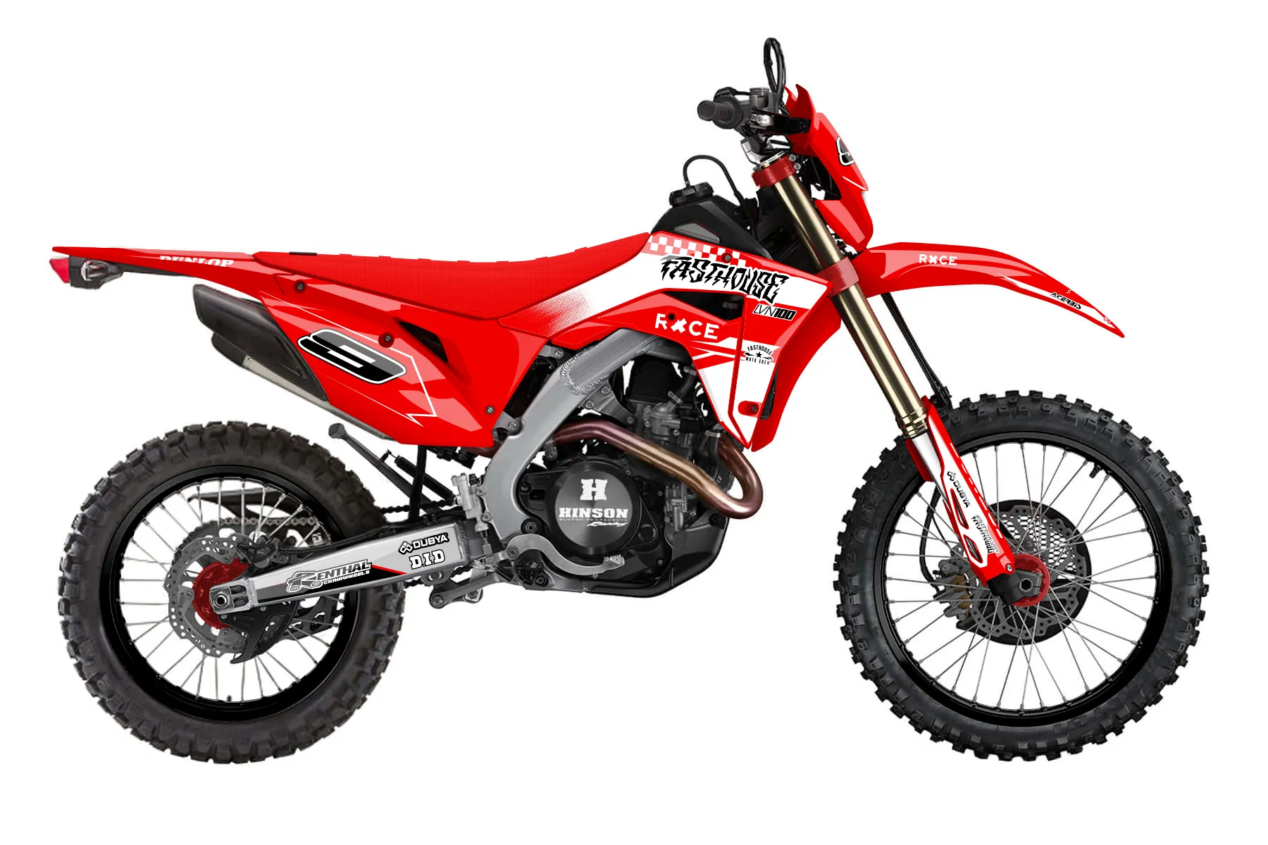 «Loose» — готовый комплект графики серии Maverick для Honda Enduro Graphic Kit Honda CRF 450 RL 2019. В комплекте: графика на бак и боковые облицовки, крылья (переднее и заднее), передний щиток, номерные таблички, защита вилки. Материал: ПВХ-винил 80 мкр с холодной ламинацией 300 мкр, общая толщина 380 мкр; покрытие глянцевое или матовое на выбор. Устойчив к UV-излучению, воде, бензину и мойке высокого давления. Клей акриловый на сольвентной основе — постоянный, для гибких пластиков. На простых поверхностях монтируется без нагрева; для сложных изгибов рекомендуем фен. Этот пресет можно заказать как есть или взять за основу в конструкторе: поменять цвета, добавить стартовый номер и свой бренд. Производство — 3–5 рабочих дней, доставка по России СДЭКом или Почтой, по СНГ — курьерскими службами.