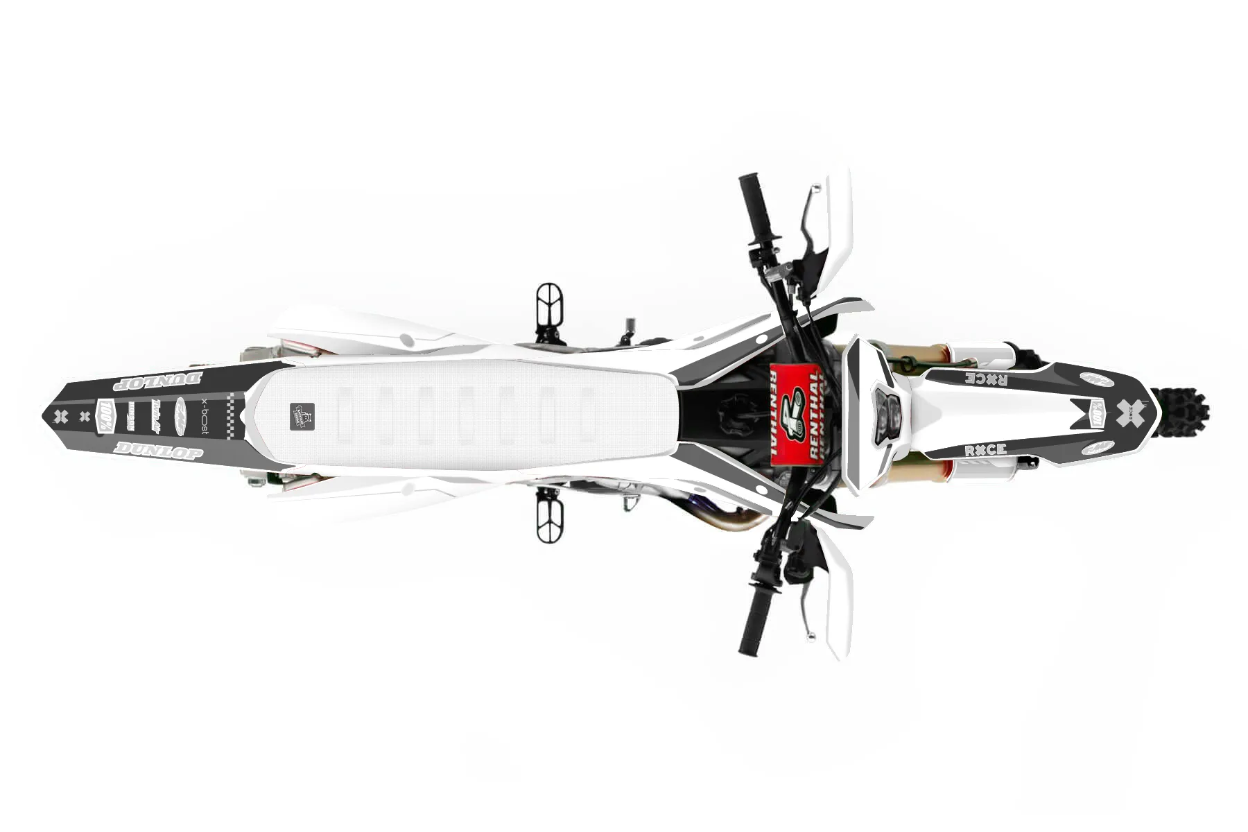 «White Camel» — готовый комплект графики серии Maverick для Honda Enduro Graphic Kit Honda CRF 450 RL 2019. В комплекте: графика на бак и боковые облицовки, крылья (переднее и заднее), передний щиток, номерные таблички, защита вилки. Материал: ПВХ-винил 80 мкр с холодной ламинацией 300 мкр, общая толщина 380 мкр; покрытие глянцевое или матовое на выбор. Устойчив к UV-излучению, воде, бензину и мойке высокого давления. Клей акриловый на сольвентной основе — постоянный, для гибких пластиков. На простых поверхностях монтируется без нагрева; для сложных изгибов рекомендуем фен. Этот пресет можно заказать как есть или взять за основу в конструкторе: поменять цвета, добавить стартовый номер и свой бренд. Производство — 3–5 рабочих дней, доставка по России СДЭКом или Почтой, по СНГ — курьерскими службами.