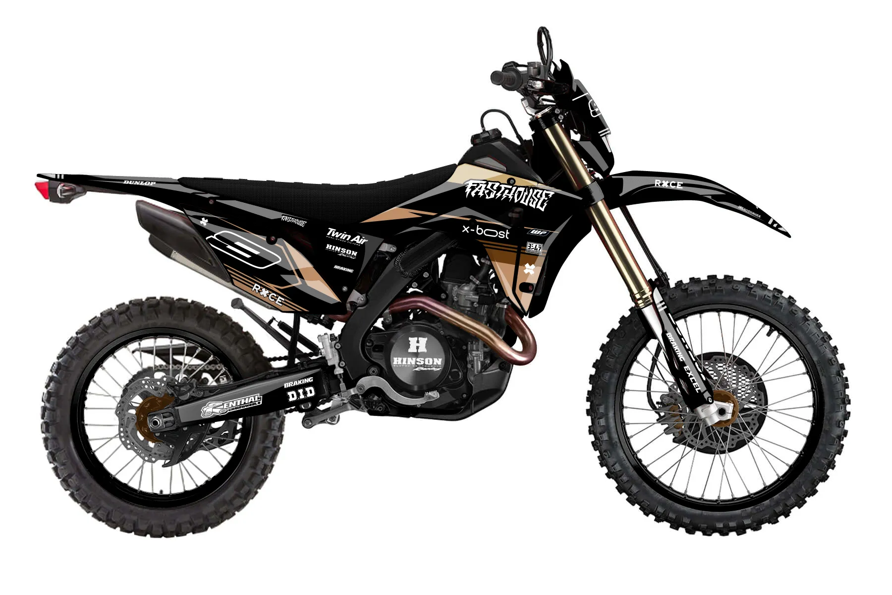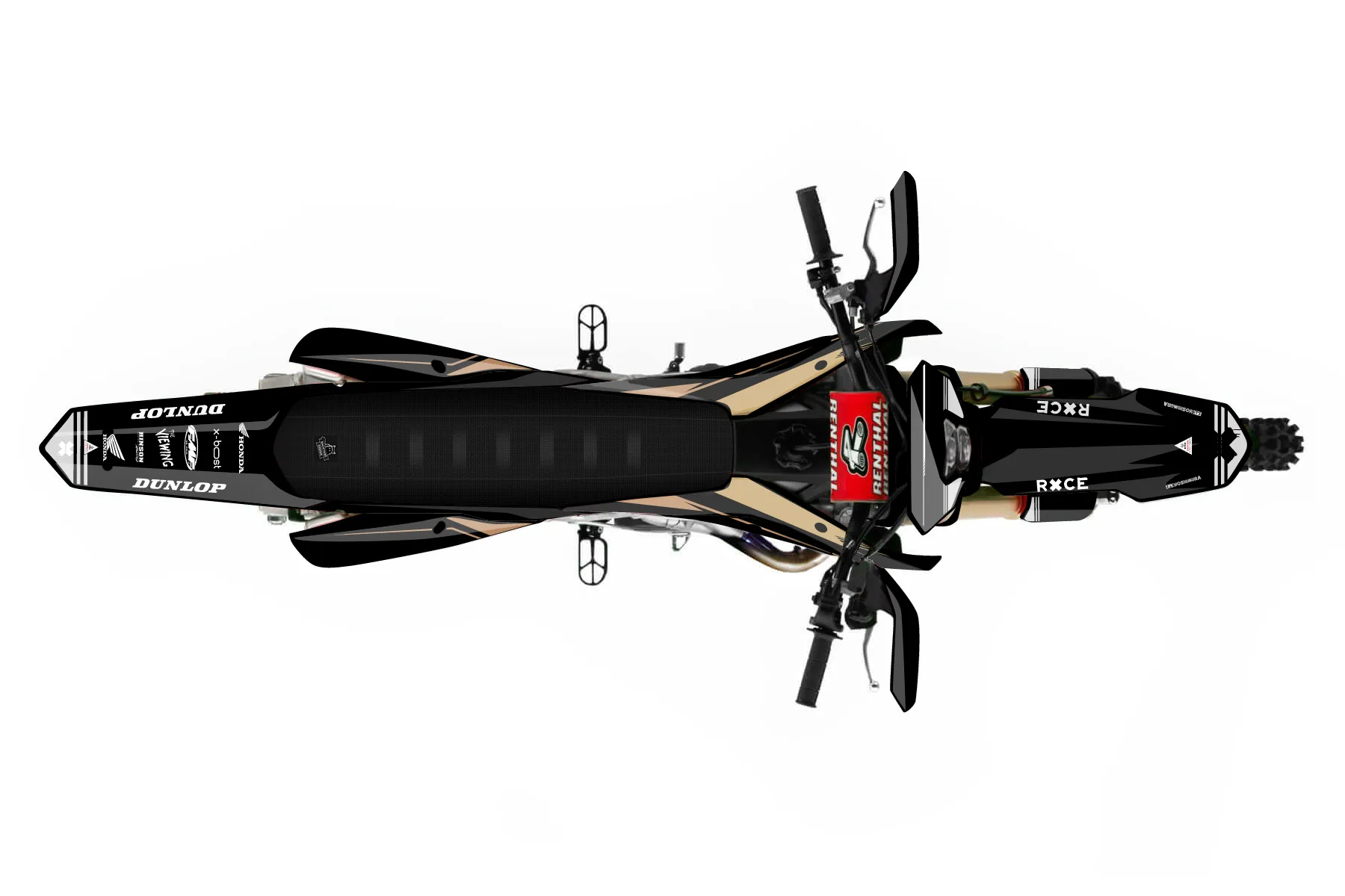 «CustomDesign1» — готовый комплект графики серии Untucked для Honda Enduro Graphic Kit Honda CRF 450 RL 2019. В комплекте: графика на бак и боковые облицовки, крылья (переднее и заднее), передний щиток, номерные таблички, защита вилки. Материал: ПВХ-винил 80 мкр с холодной ламинацией 300 мкр, общая толщина 380 мкр; покрытие глянцевое или матовое на выбор. Устойчив к UV-излучению, воде, бензину и мойке высокого давления. Клей акриловый на сольвентной основе — постоянный, для гибких пластиков. На простых поверхностях монтируется без нагрева; для сложных изгибов рекомендуем фен. Этот пресет можно заказать как есть или взять за основу в конструкторе: поменять цвета, добавить стартовый номер и свой бренд. Производство — 3–5 рабочих дней, доставка по России СДЭКом или Почтой, по СНГ — курьерскими службами.