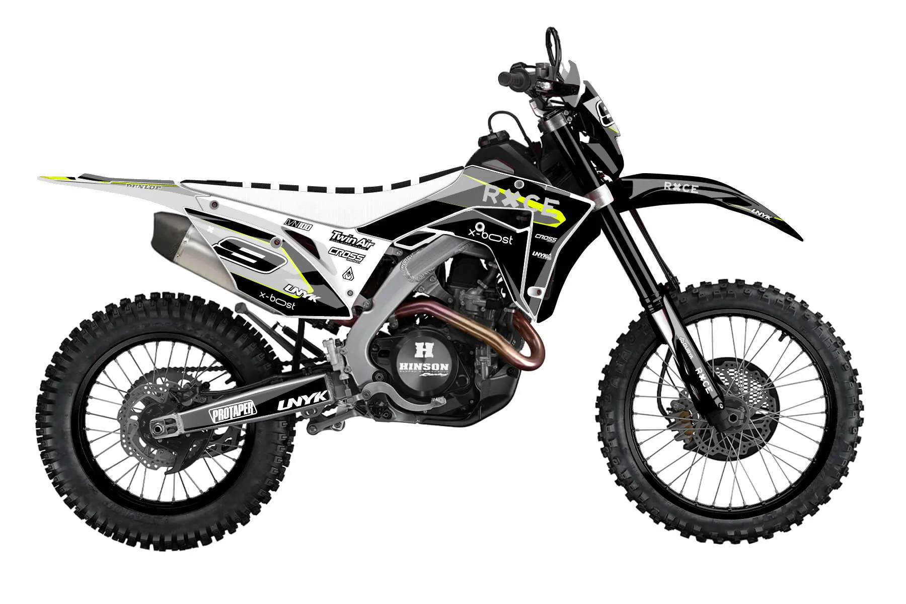 «Lucent Neon» — готовый комплект графики серии Flow для Honda Enduro Graphic Kit Honda CRF 450 X 2019. В комплекте: графика на бак и боковые облицовки, крылья (переднее и заднее), передний щиток, номерные таблички, защита вилки. Материал: ПВХ-винил 80 мкр с холодной ламинацией 300 мкр, общая толщина 380 мкр; покрытие глянцевое или матовое на выбор. Устойчив к UV-излучению, воде, бензину и мойке высокого давления. Клей акриловый на сольвентной основе — постоянный, для гибких пластиков. На простых поверхностях монтируется без нагрева; для сложных изгибов рекомендуем фен. Этот пресет можно заказать как есть или взять за основу в конструкторе: поменять цвета, добавить стартовый номер и свой бренд. Производство — 3–5 рабочих дней, доставка по России СДЭКом или Почтой, по СНГ — курьерскими службами.