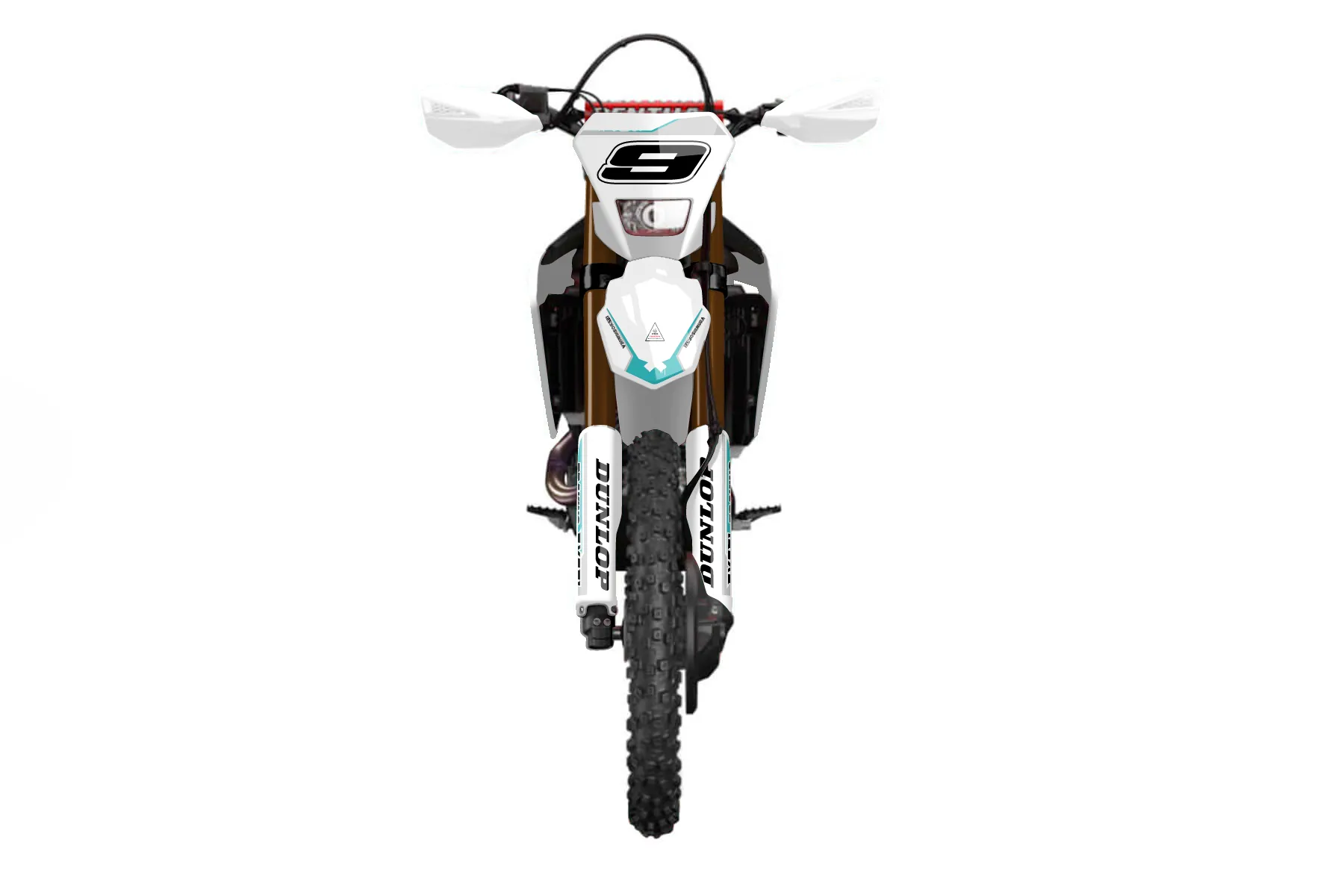 «JLaw» — готовый комплект графики серии Maverick для Honda Enduro Graphic Kit Honda CRF 450 X 2019. В комплекте: графика на бак и боковые облицовки, крылья (переднее и заднее), передний щиток, номерные таблички, защита вилки. Материал: ПВХ-винил 80 мкр с холодной ламинацией 300 мкр, общая толщина 380 мкр; покрытие глянцевое или матовое на выбор. Устойчив к UV-излучению, воде, бензину и мойке высокого давления. Клей акриловый на сольвентной основе — постоянный, для гибких пластиков. На простых поверхностях монтируется без нагрева; для сложных изгибов рекомендуем фен. Этот пресет можно заказать как есть или взять за основу в конструкторе: поменять цвета, добавить стартовый номер и свой бренд. Производство — 3–5 рабочих дней, доставка по России СДЭКом или Почтой, по СНГ — курьерскими службами.