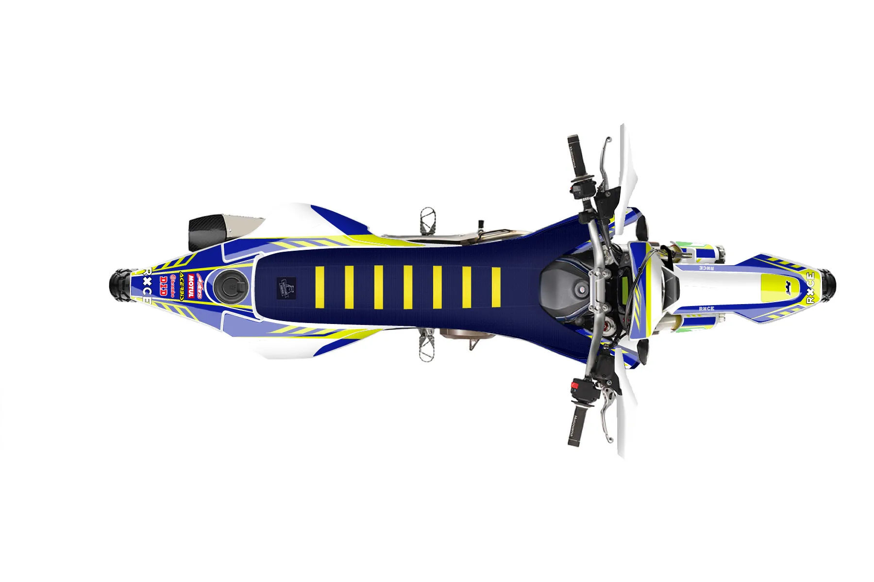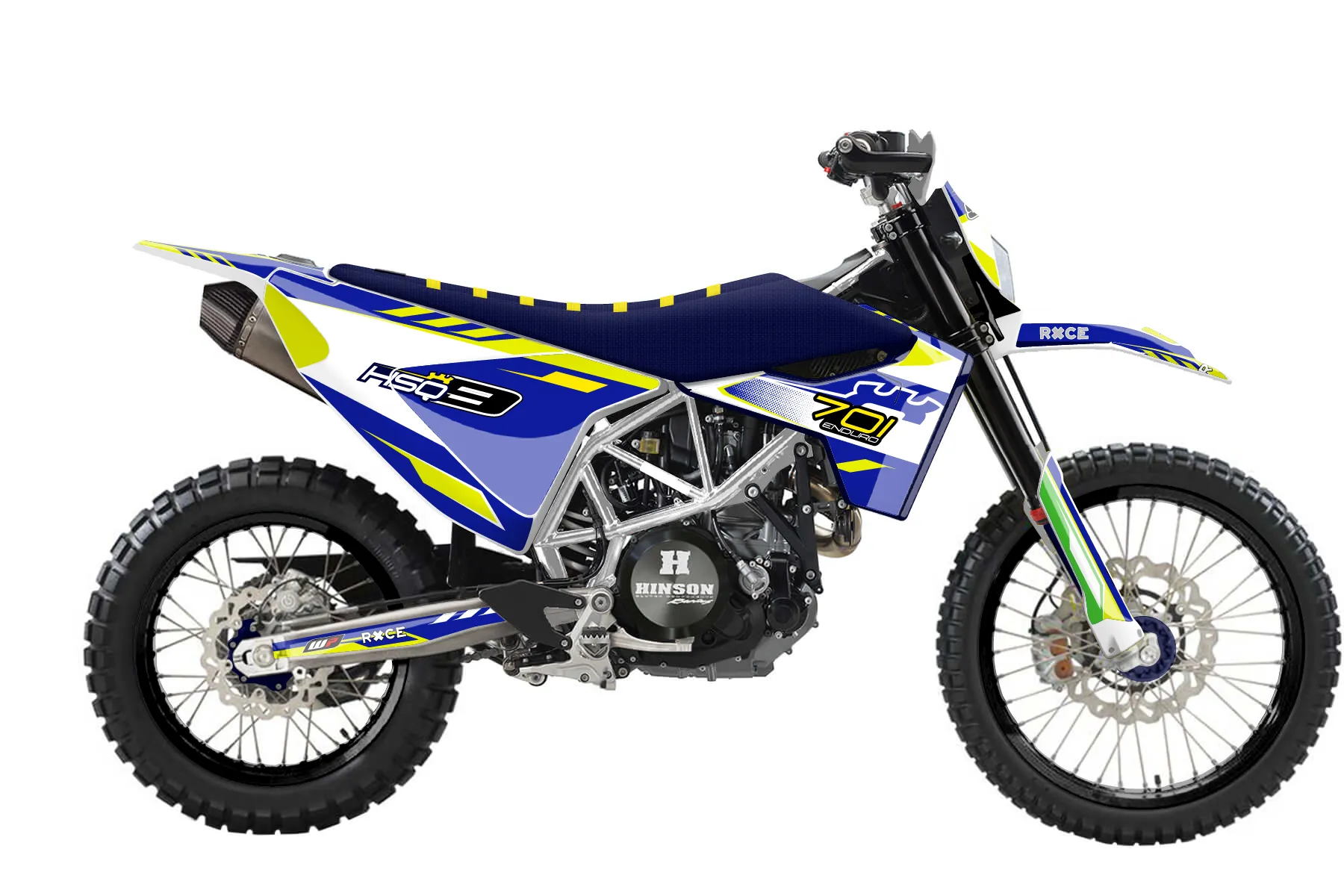 «bluyellow» — готовый комплект графики серии Maverick для Husqvarna Enduro Graphic Kit Husqvarna 701 2015. В комплекте: графика на бак и боковые облицовки, крылья (переднее и заднее), передний щиток, номерные таблички, защита вилки. Материал: ПВХ-винил 80 мкр с холодной ламинацией 300 мкр, общая толщина 380 мкр; покрытие глянцевое или матовое на выбор. Устойчив к UV-излучению, воде, бензину и мойке высокого давления. Клей акриловый на сольвентной основе — постоянный, для гибких пластиков. На простых поверхностях монтируется без нагрева; для сложных изгибов рекомендуем фен. Этот пресет можно заказать как есть или взять за основу в конструкторе: поменять цвета, добавить стартовый номер и свой бренд. Производство — 3–5 рабочих дней, доставка по России СДЭКом или Почтой, по СНГ — курьерскими службами.