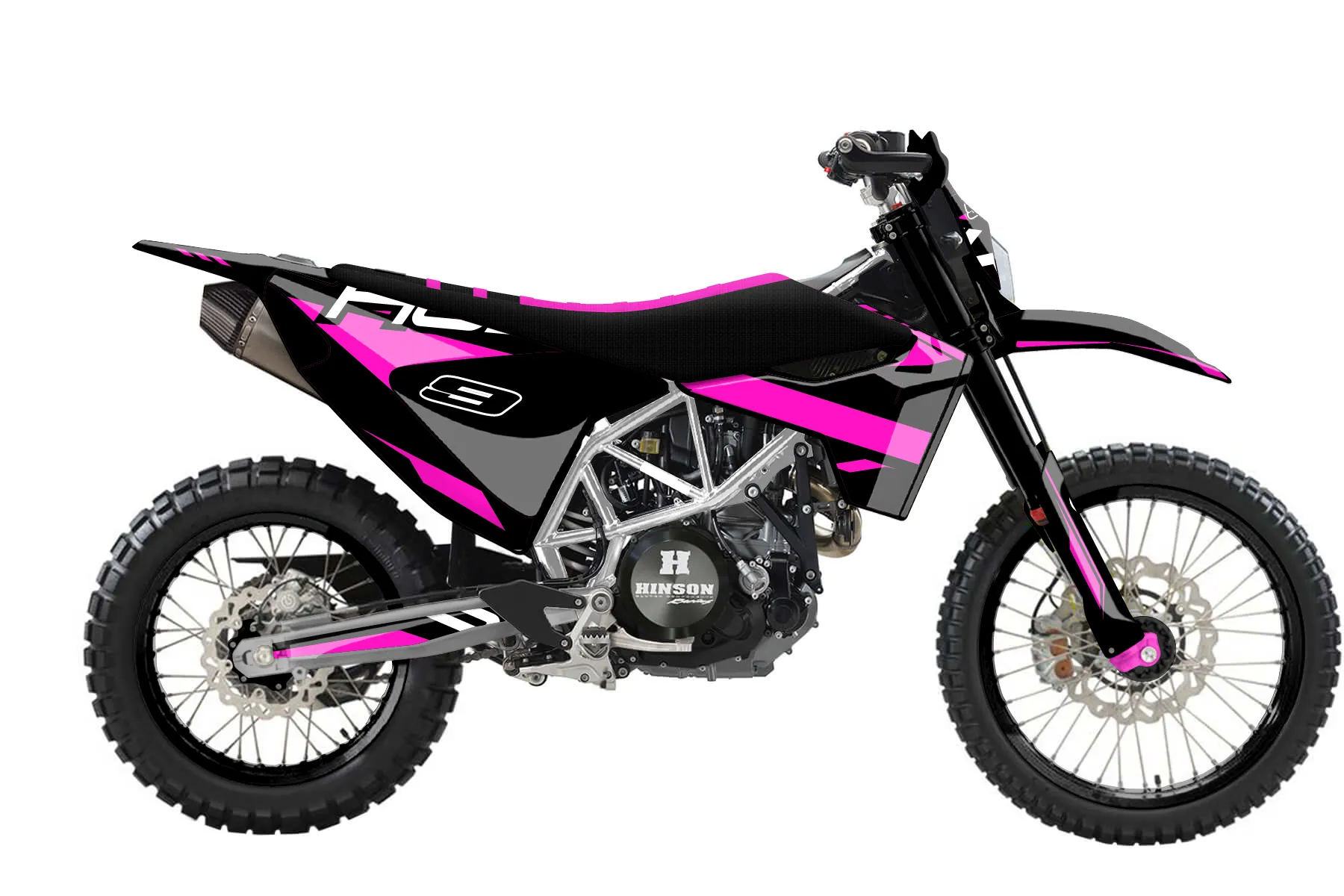 «negra con rosa» — готовый комплект графики серии Maverick для Husqvarna Enduro Graphic Kit Husqvarna 701 2015. В комплекте: графика на бак и боковые облицовки, крылья (переднее и заднее), передний щиток, номерные таблички, защита вилки. Материал: ПВХ-винил 80 мкр с холодной ламинацией 300 мкр, общая толщина 380 мкр; покрытие глянцевое или матовое на выбор. Устойчив к UV-излучению, воде, бензину и мойке высокого давления. Клей акриловый на сольвентной основе — постоянный, для гибких пластиков. На простых поверхностях монтируется без нагрева; для сложных изгибов рекомендуем фен. Этот пресет можно заказать как есть или взять за основу в конструкторе: поменять цвета, добавить стартовый номер и свой бренд. Производство — 3–5 рабочих дней, доставка по России СДЭКом или Почтой, по СНГ — курьерскими службами.