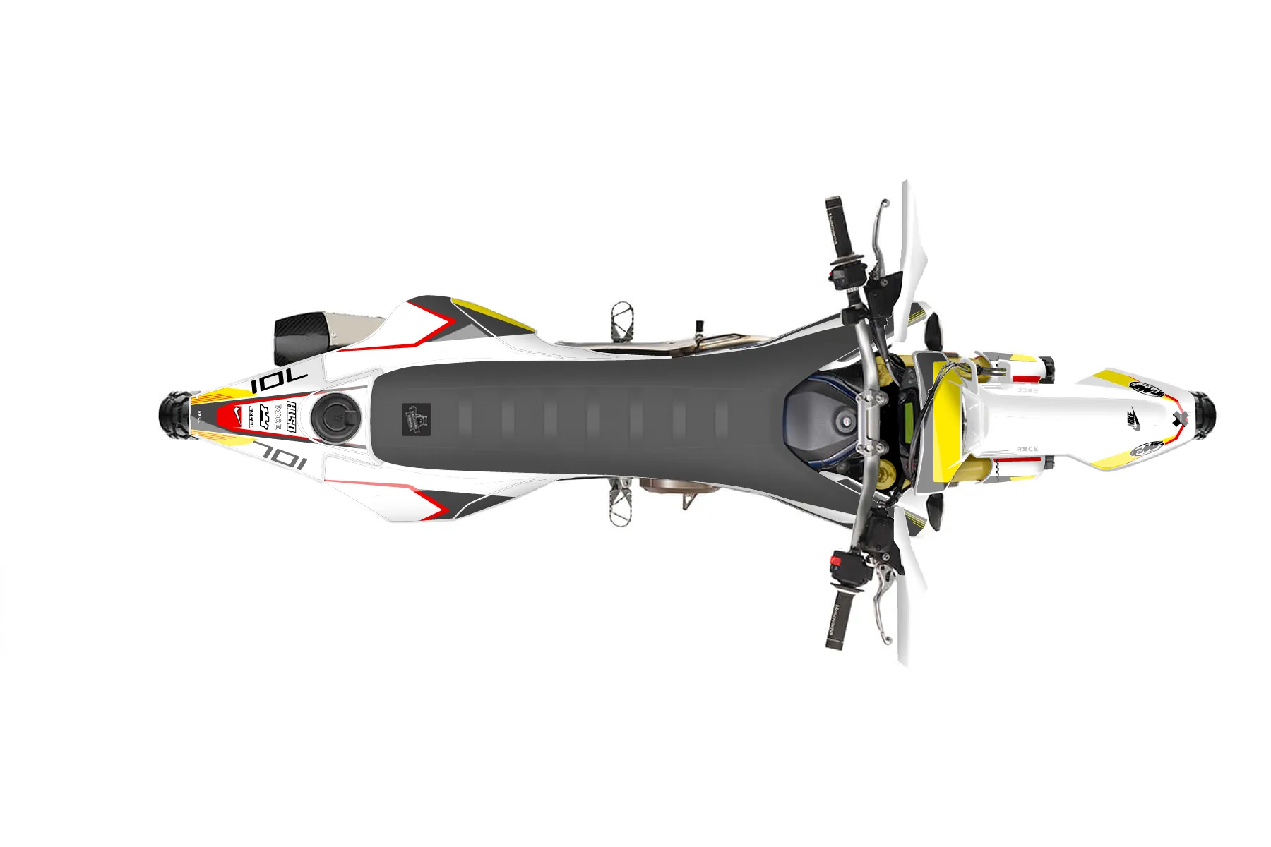 «Total» — готовый комплект графики серии Staple для Husqvarna Enduro Graphic Kit Husqvarna 701 2015. В комплекте: графика на бак и боковые облицовки, крылья (переднее и заднее), передний щиток, номерные таблички, защита вилки. Материал: ПВХ-винил 80 мкр с холодной ламинацией 300 мкр, общая толщина 380 мкр; покрытие глянцевое или матовое на выбор. Устойчив к UV-излучению, воде, бензину и мойке высокого давления. Клей акриловый на сольвентной основе — постоянный, для гибких пластиков. На простых поверхностях монтируется без нагрева; для сложных изгибов рекомендуем фен. Этот пресет можно заказать как есть или взять за основу в конструкторе: поменять цвета, добавить стартовый номер и свой бренд. Производство — 3–5 рабочих дней, доставка по России СДЭКом или Почтой, по СНГ — курьерскими службами.