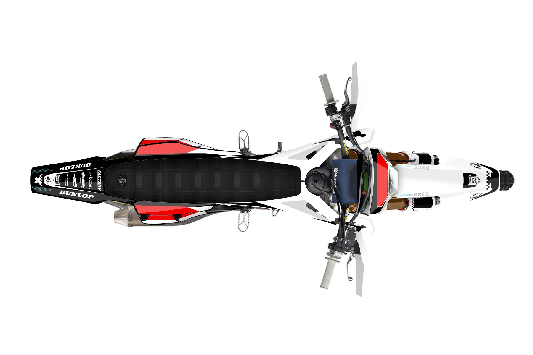 «CustomDesign» — готовый комплект графики серии Staple для Husqvarna Enduro Graphic Kit Husqvarna FE 250 2020. В комплекте: графика на бак и боковые облицовки, крылья (переднее и заднее), передний щиток, номерные таблички, защита вилки. Материал: ПВХ-винил 80 мкр с холодной ламинацией 300 мкр, общая толщина 380 мкр; покрытие глянцевое или матовое на выбор. Устойчив к UV-излучению, воде, бензину и мойке высокого давления. Клей акриловый на сольвентной основе — постоянный, для гибких пластиков. На простых поверхностях монтируется без нагрева; для сложных изгибов рекомендуем фен. Этот пресет можно заказать как есть или взять за основу в конструкторе: поменять цвета, добавить стартовый номер и свой бренд. Производство — 3–5 рабочих дней, доставка по России СДЭКом или Почтой, по СНГ — курьерскими службами.