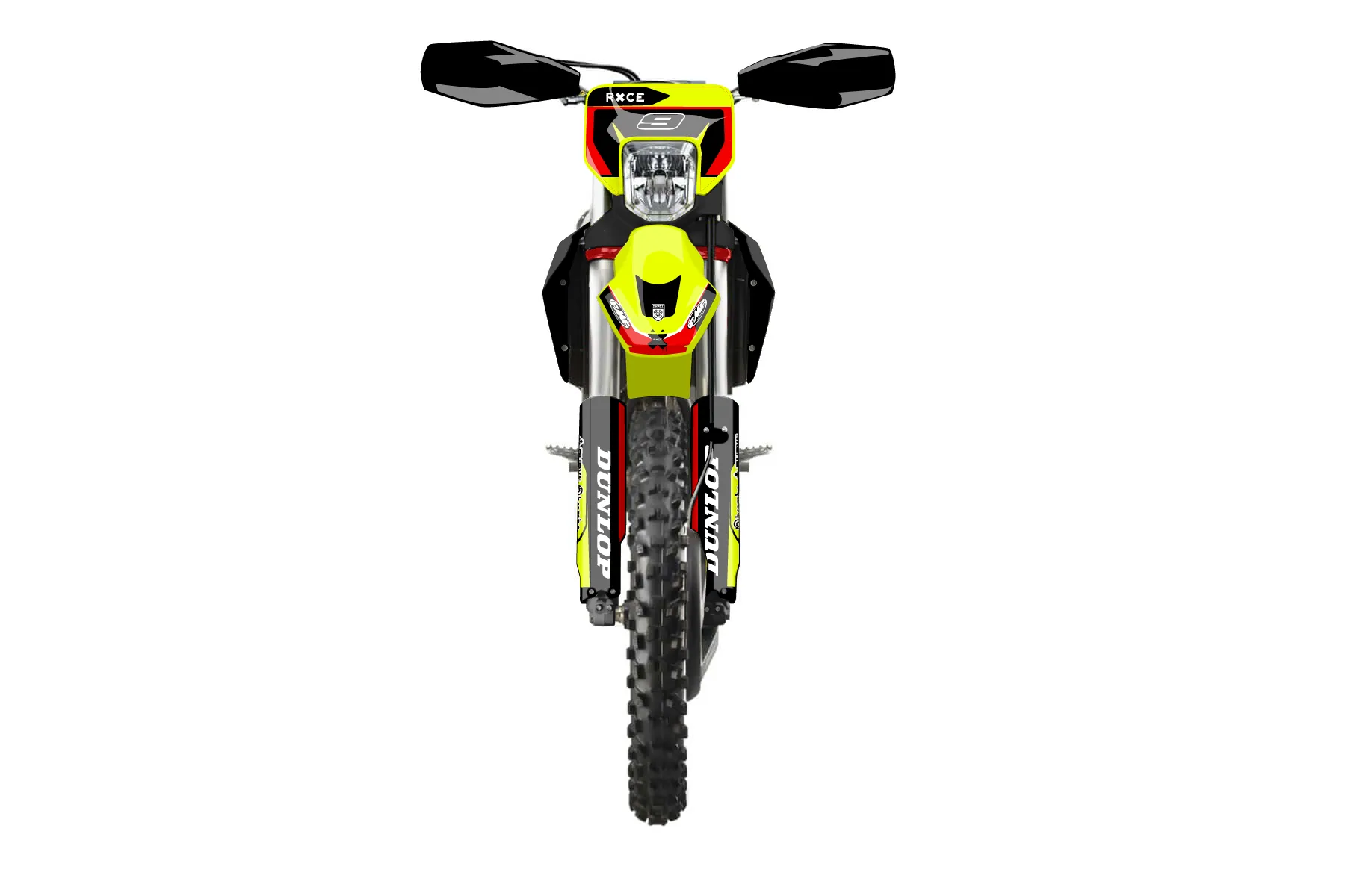 «Fluorescent» — готовый комплект графики серии Flow для Husqvarna Enduro Graphic Kit Husqvarna FE 250 2024. В комплекте: графика на бак и боковые облицовки, крылья (переднее и заднее), передний щиток, номерные таблички, защита вилки. Материал: ПВХ-винил 80 мкр с холодной ламинацией 300 мкр, общая толщина 380 мкр; покрытие глянцевое или матовое на выбор. Устойчив к UV-излучению, воде, бензину и мойке высокого давления. Клей акриловый на сольвентной основе — постоянный, для гибких пластиков. На простых поверхностях монтируется без нагрева; для сложных изгибов рекомендуем фен. Этот пресет можно заказать как есть или взять за основу в конструкторе: поменять цвета, добавить стартовый номер и свой бренд. Производство — 3–5 рабочих дней, доставка по России СДЭКом или Почтой, по СНГ — курьерскими службами.